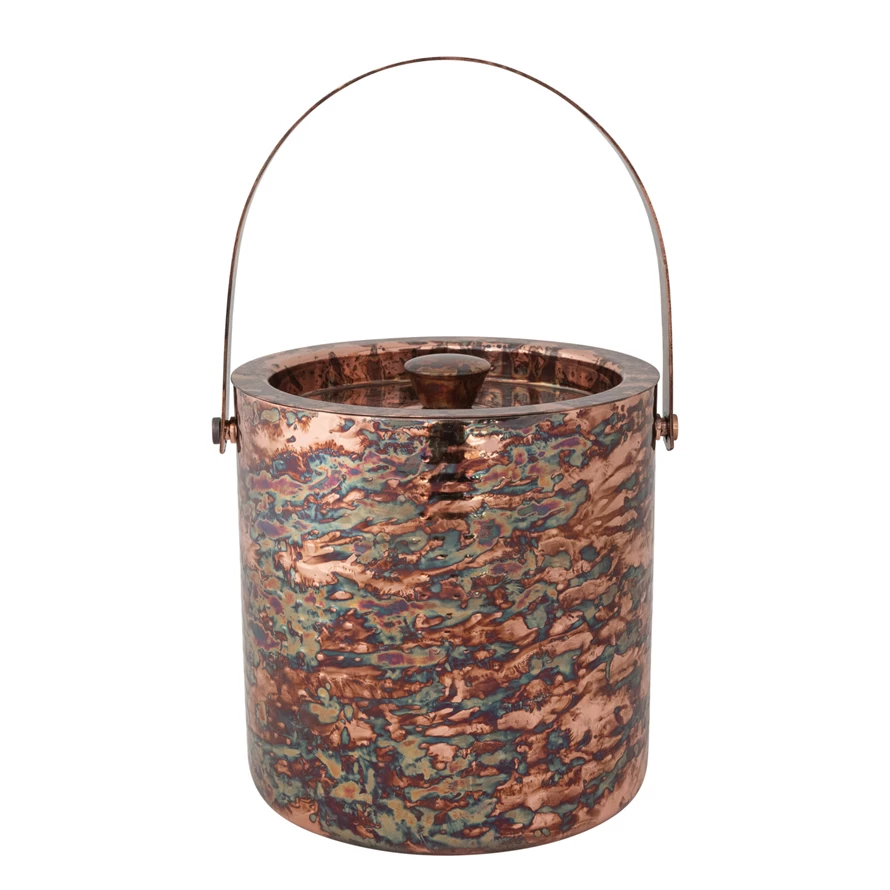 3 Quart Hammered Stainless Steel Double-Walled Ice Bucket, Oxidized Copper Finish