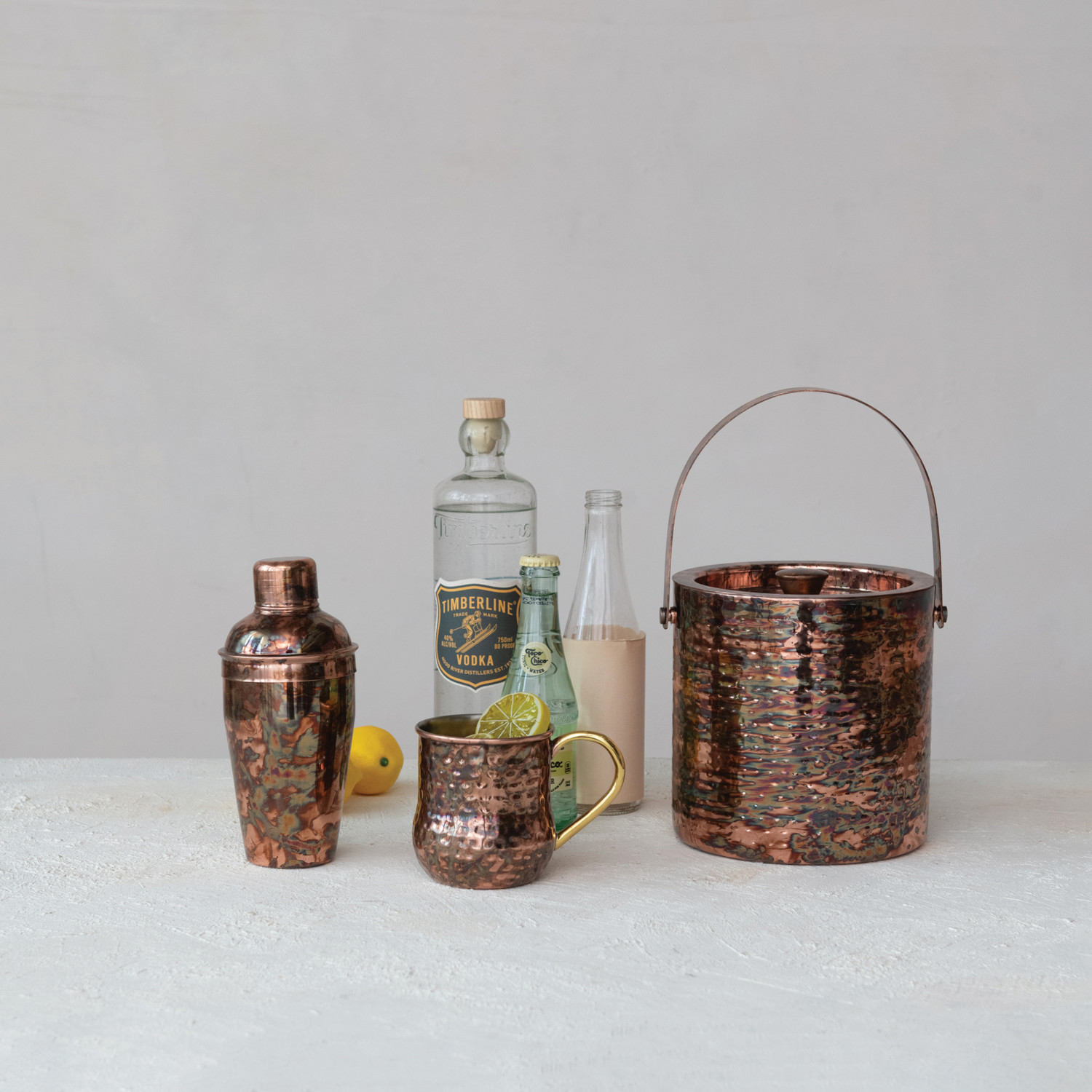3 Quart Hammered Stainless Steel Double-Walled Ice Bucket, Oxidized Copper Finish