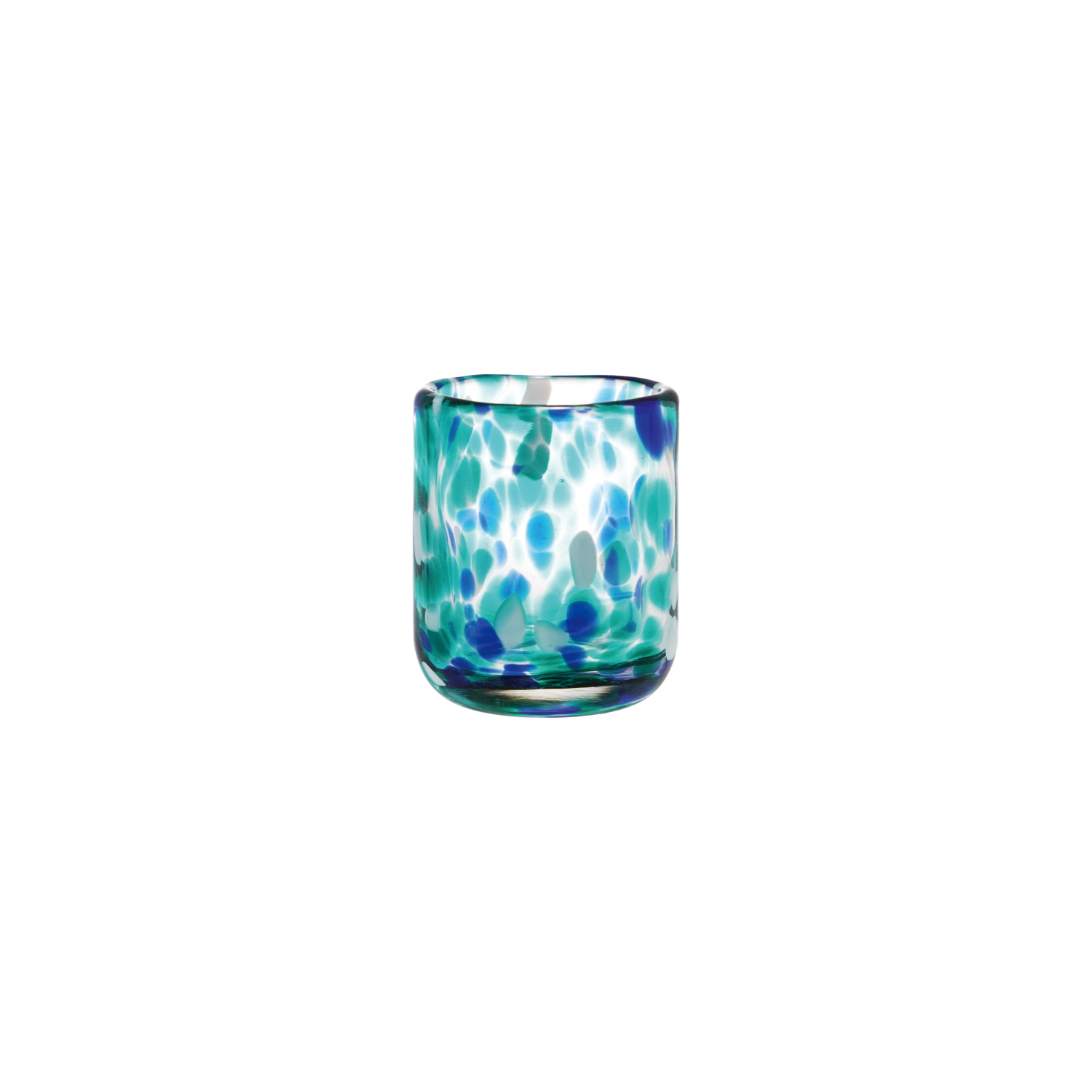 Catalog Name: 2" Round x 2-1/4"H 2 oz. Hand-Blown Confetti Shot Glass, Blue