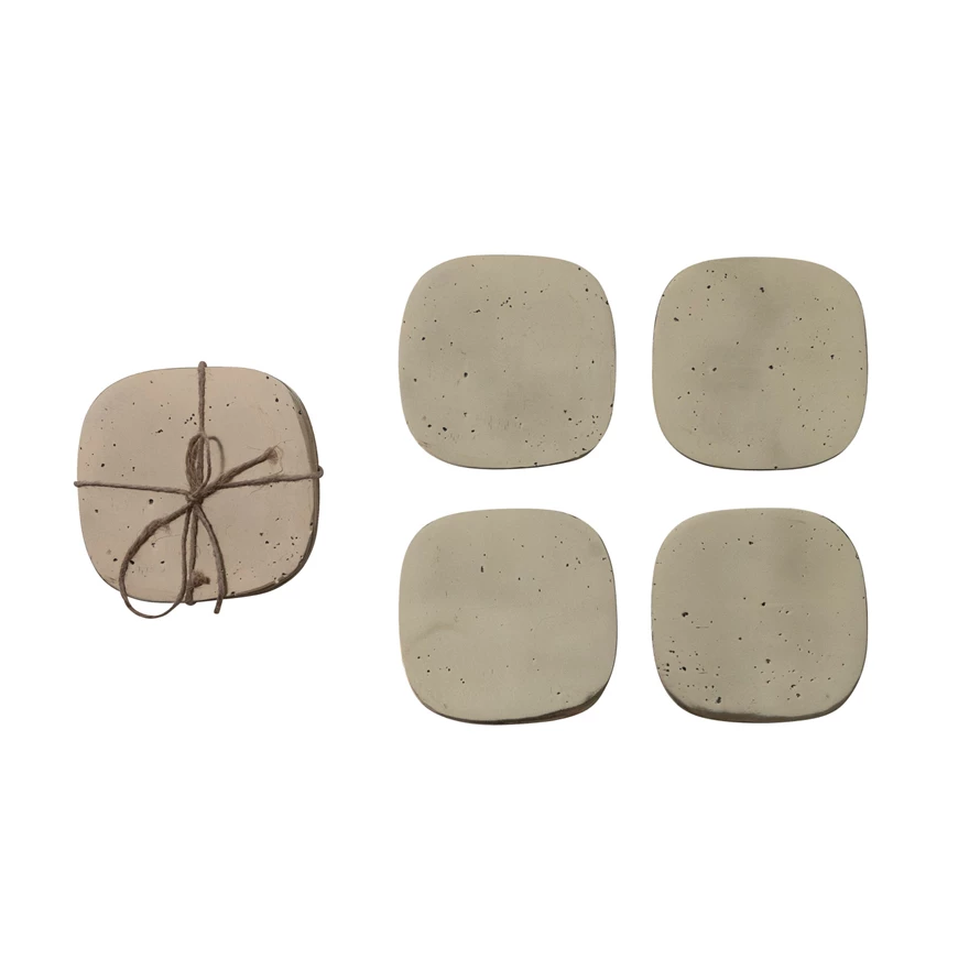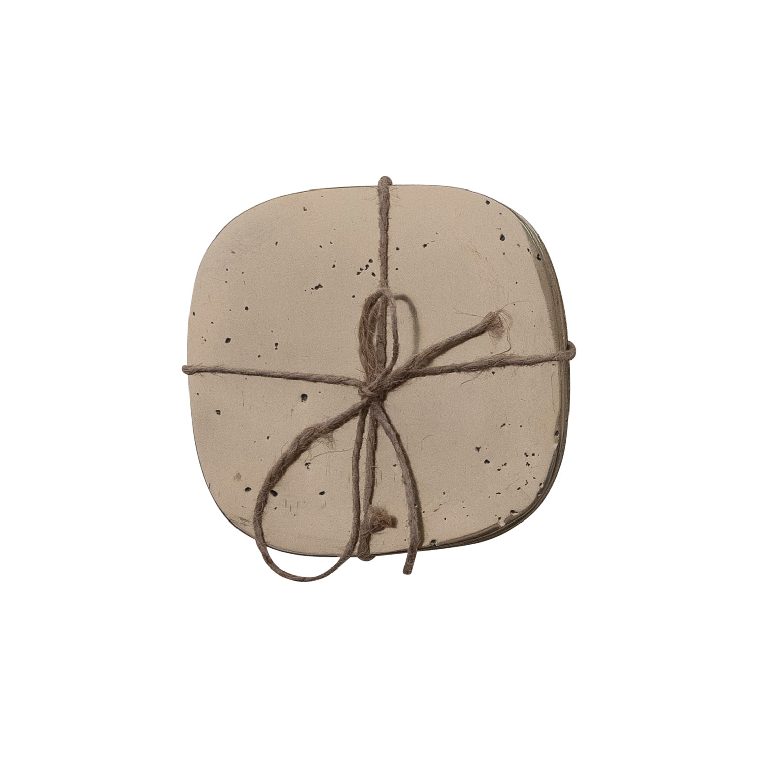 Catalog Name: 4" Square Pocked Aluminum Coasters, Gold Finish, Set of 4 Tied w/ Jute