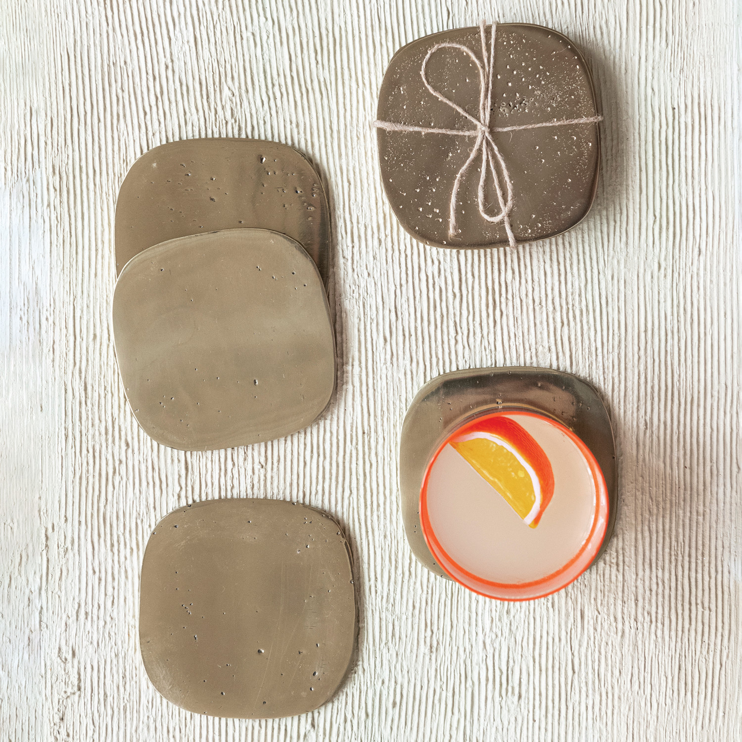 Pocked Aluminum Coasters, Gold Finish, Set of 4 Tied with Jute