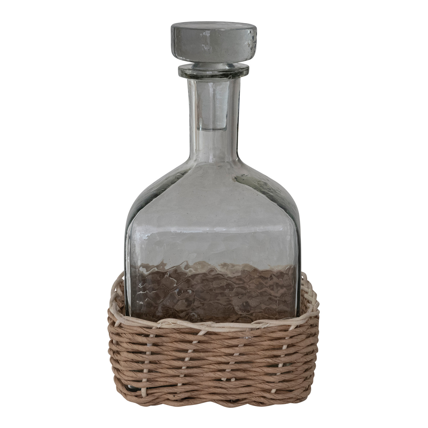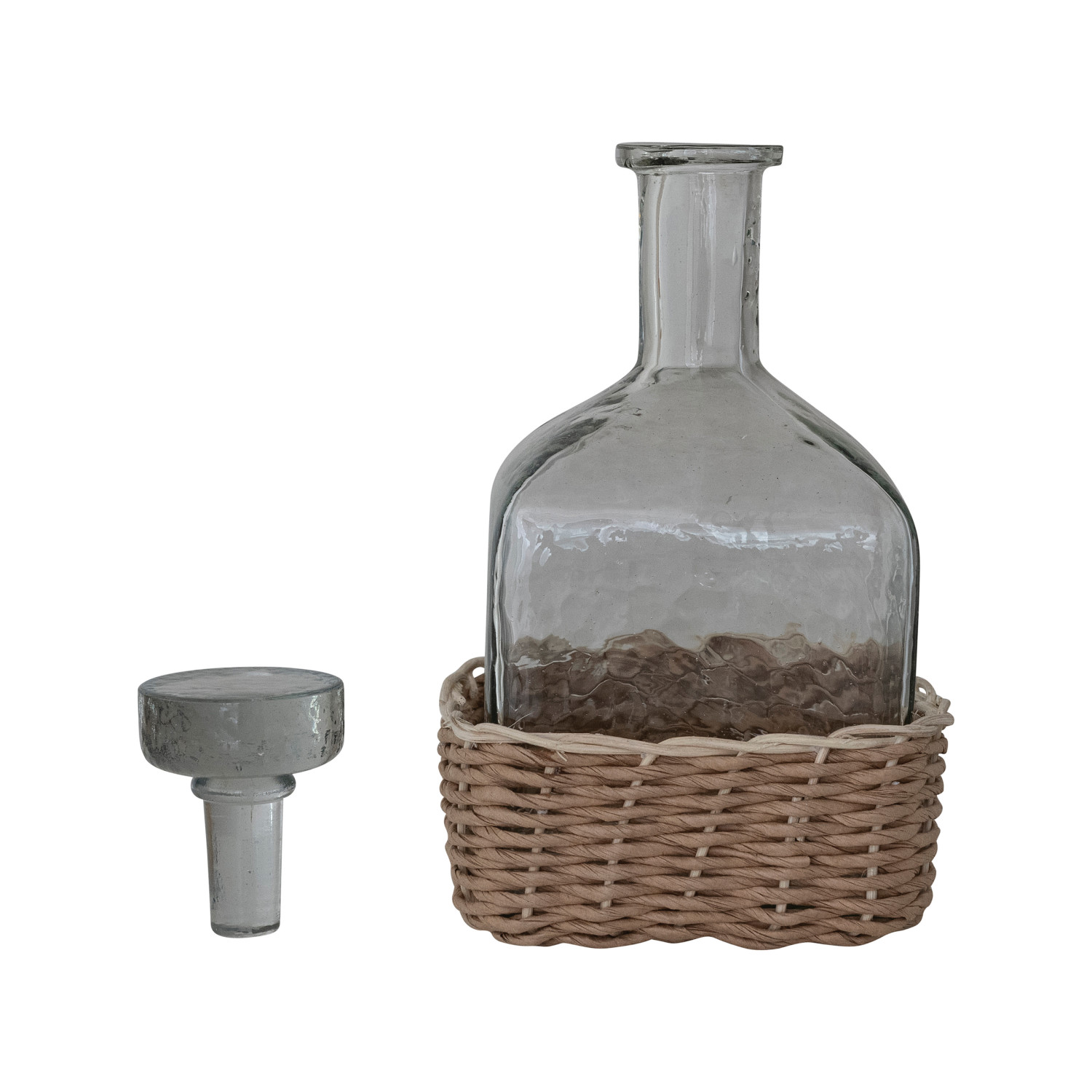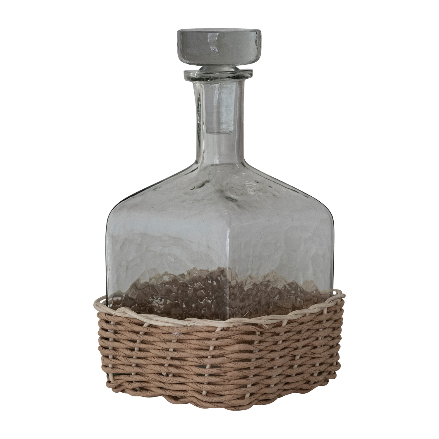 1-1/4 Quart Hammered Glass Bottle with Glass Stopper & Hand-Woven Rattan Base, Natural