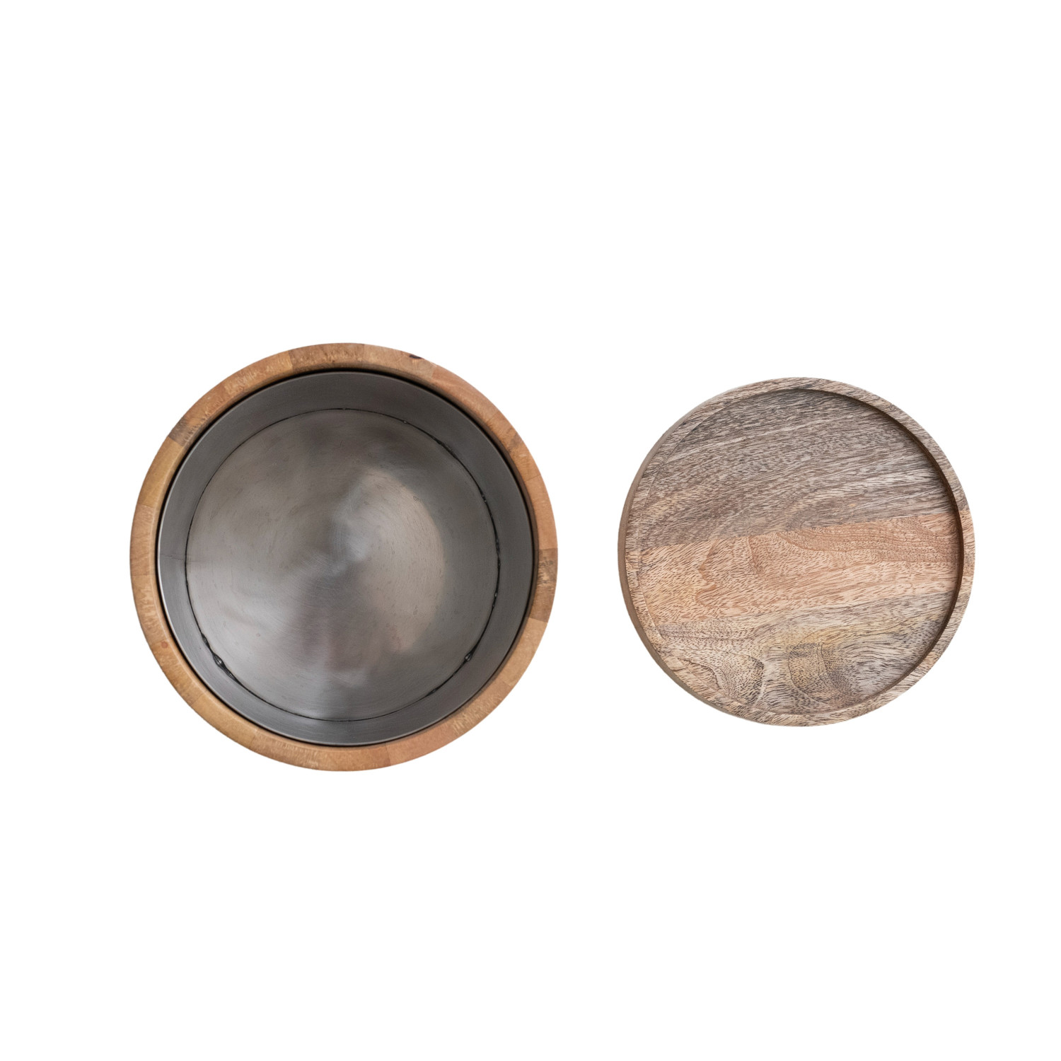 Catalog Name: 9" Round x 8"H 3-3/4 Quart Mango Wood & Stainless Steel Ice Bucket w/ Lid, Natural