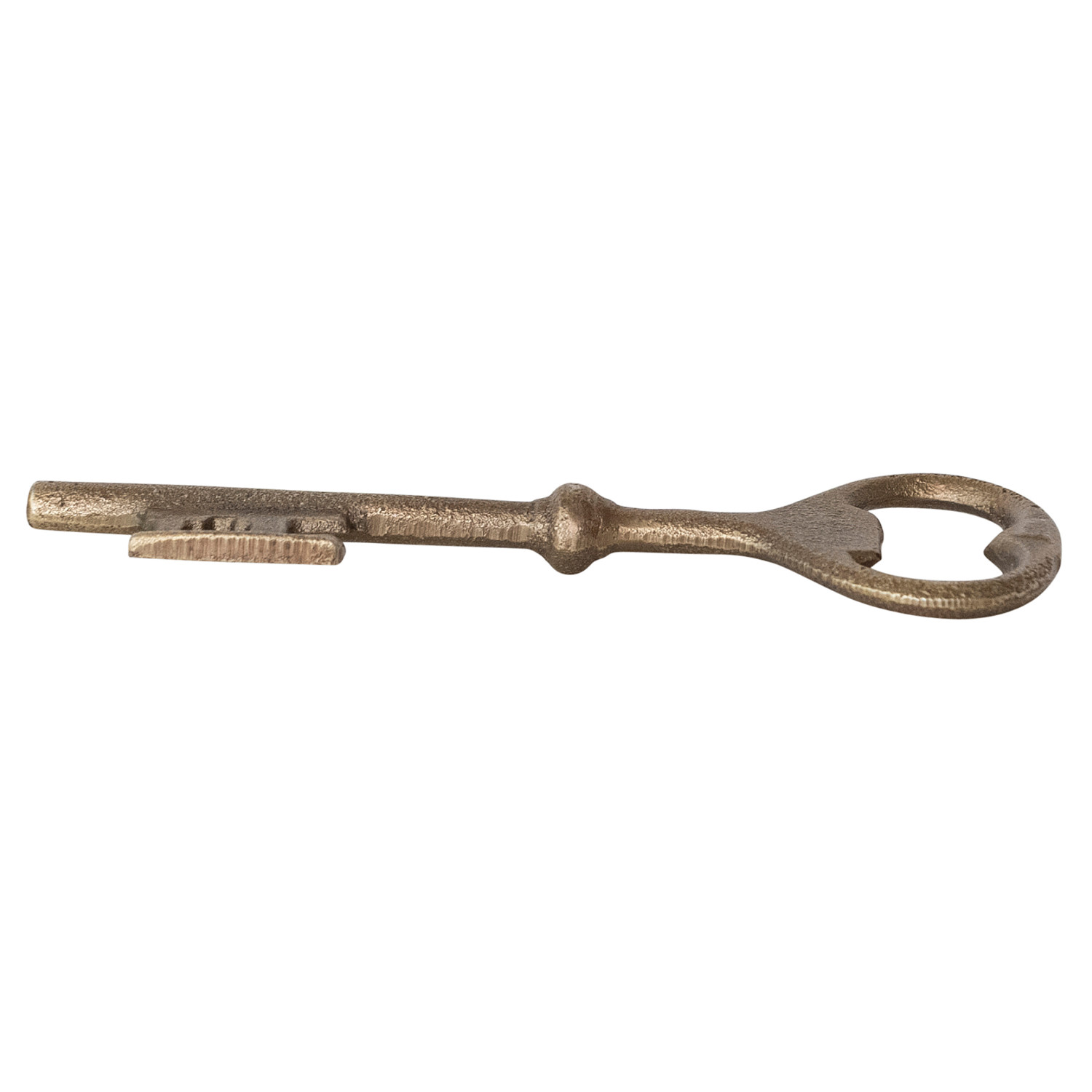 6-1/4"L Cast Iron Key Shaped Bottle Opener, Antique Brass Finish