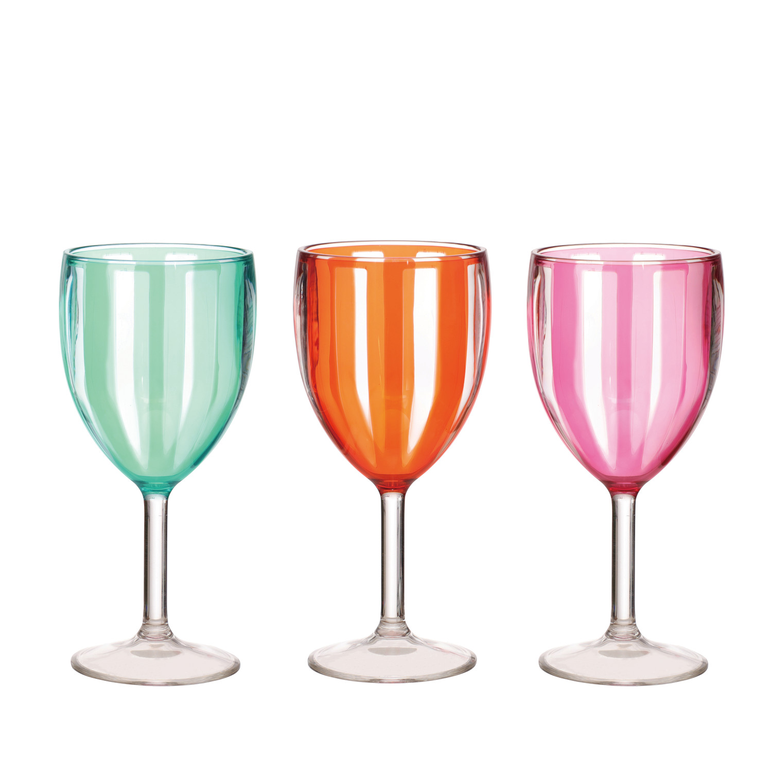 Catalog Name: 3-1/2" Round x 7-1/2"H 12 oz. Acrylic Stemmed Wine Glass w/ Stripes, 3 Colors