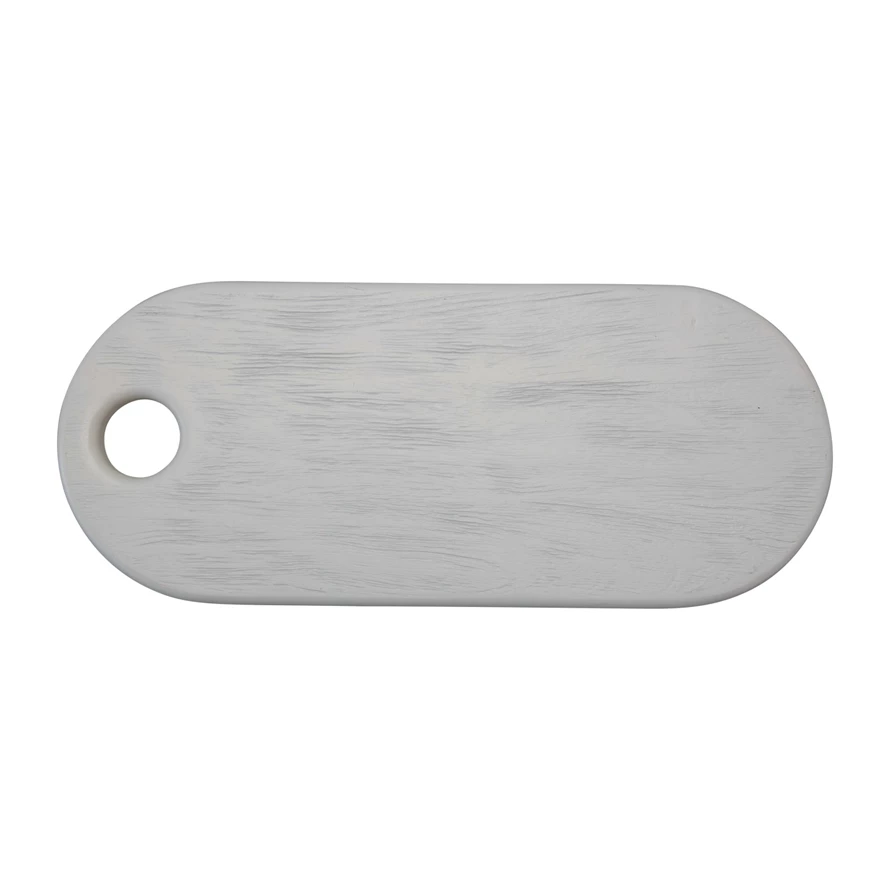 Catalog Name: 19"L x 8"W Acacia Wood Cheese/Cutting Board w/ Handle, Combed White Finish
