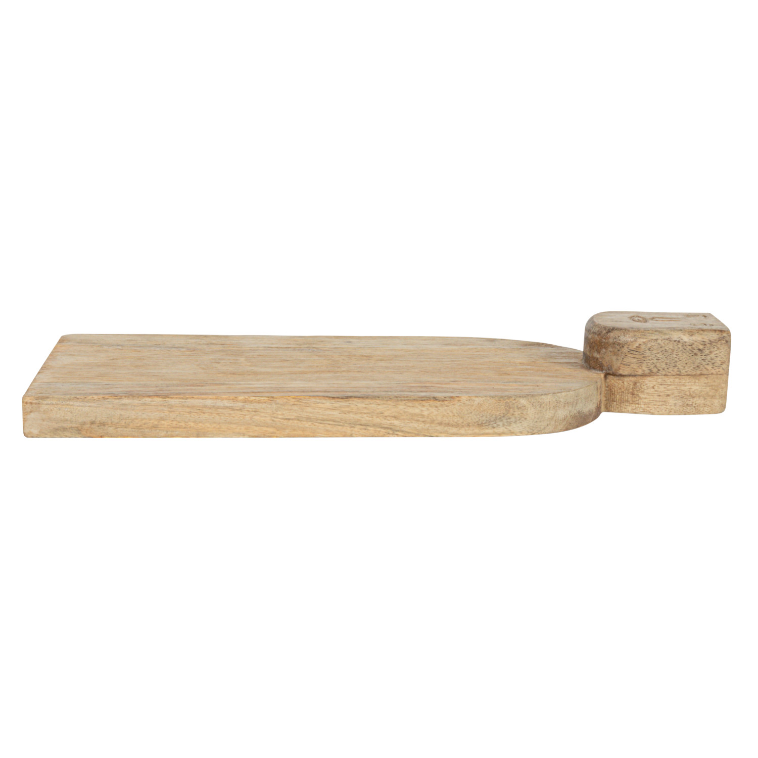 Catalog Name: 18"L x 8"W Hand-Carved Mango Wood Cheese/Serving Board w/ Face Handle, Combed Finish, Natural