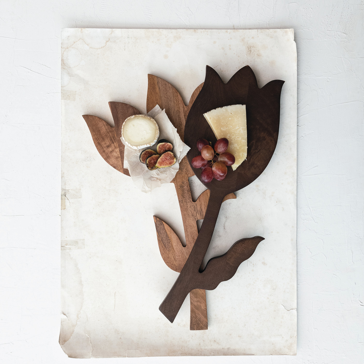 Catalog Name: 20"L x 7"W Mango Wood Flower Shaped Cheese/Serving Board, Walnut Finish