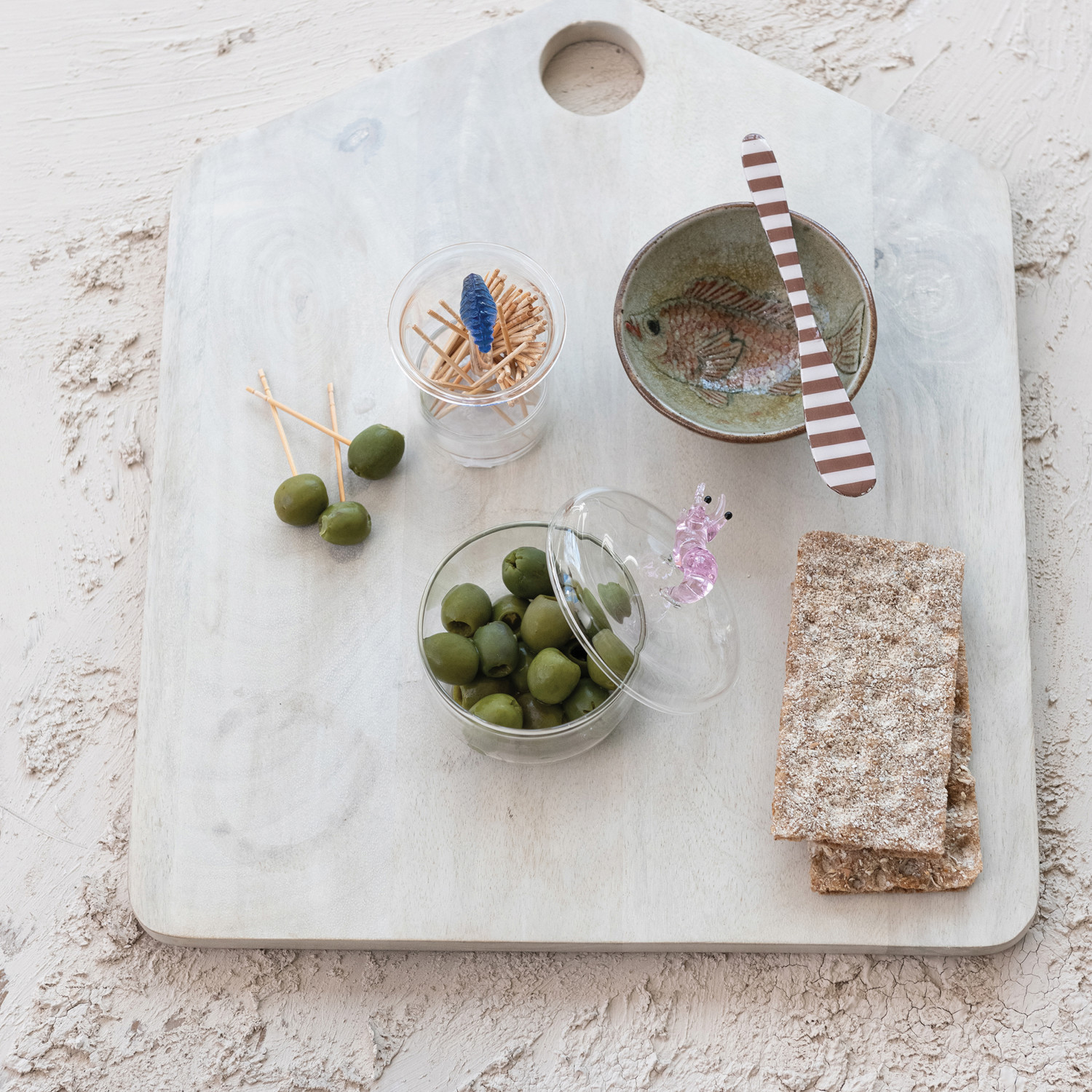 Mango Wood Cheese/Cutting Board with Handle, Bleached