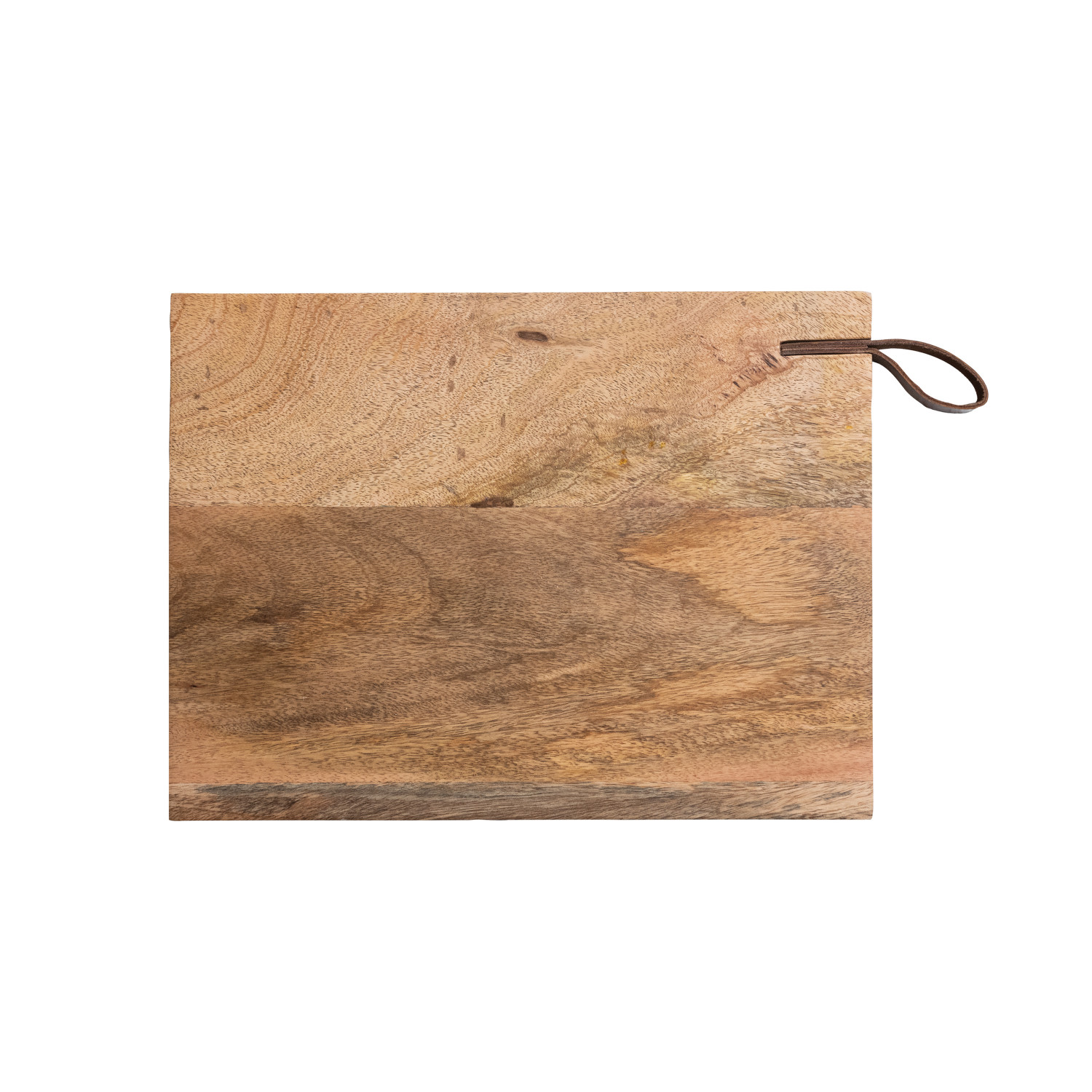 Catalog Name: 16"L x 12"W Mango Wood Cheese/Serving Board w/ Leather Handle, Natural