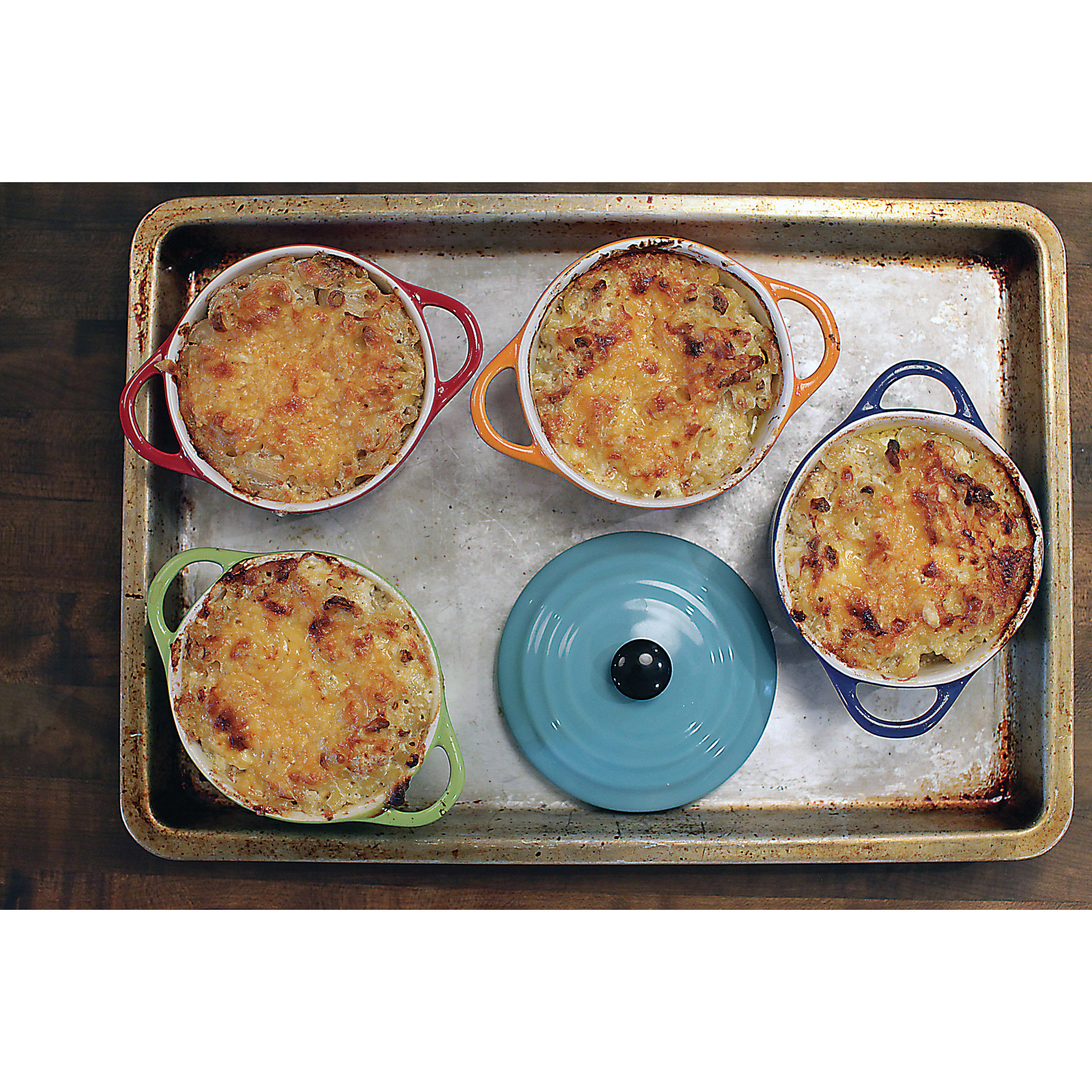 Crème brûlée, bread pudding, individual stews, baked Brie: the possibilities are endless with these adorable mini bakers in shades of red, yellow, green, aqua, orange, and blue!