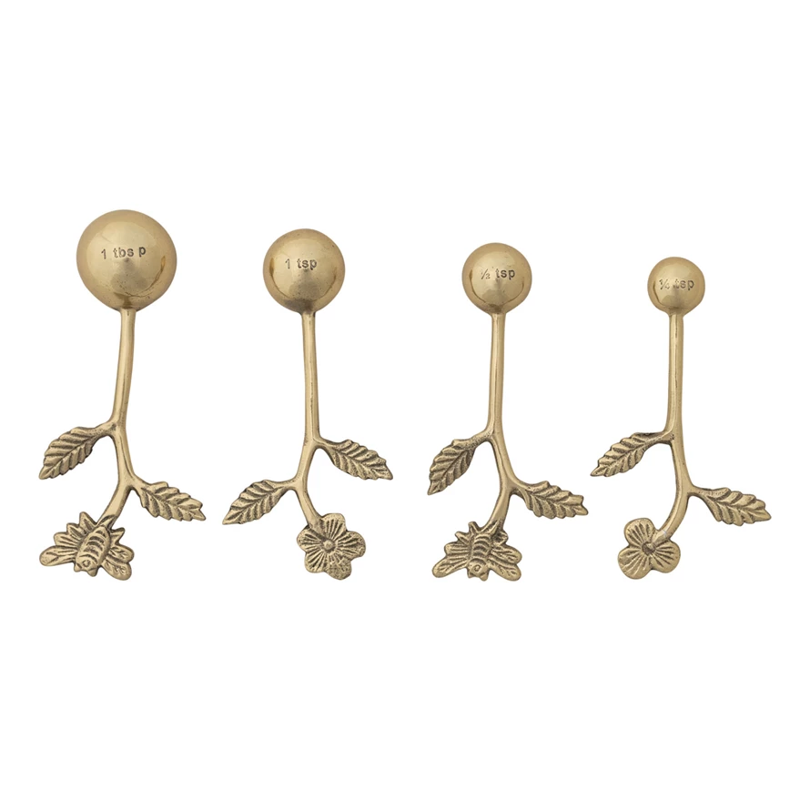 Catalog Name: 5-1/4"L 1 Tbsp, 1 Tsp, 1/2 Tsp & 1/4 Tsp Cast Aluminum Measuring Spoons w/ Leaf & Flower Handles, Gold Finish, Set of 4