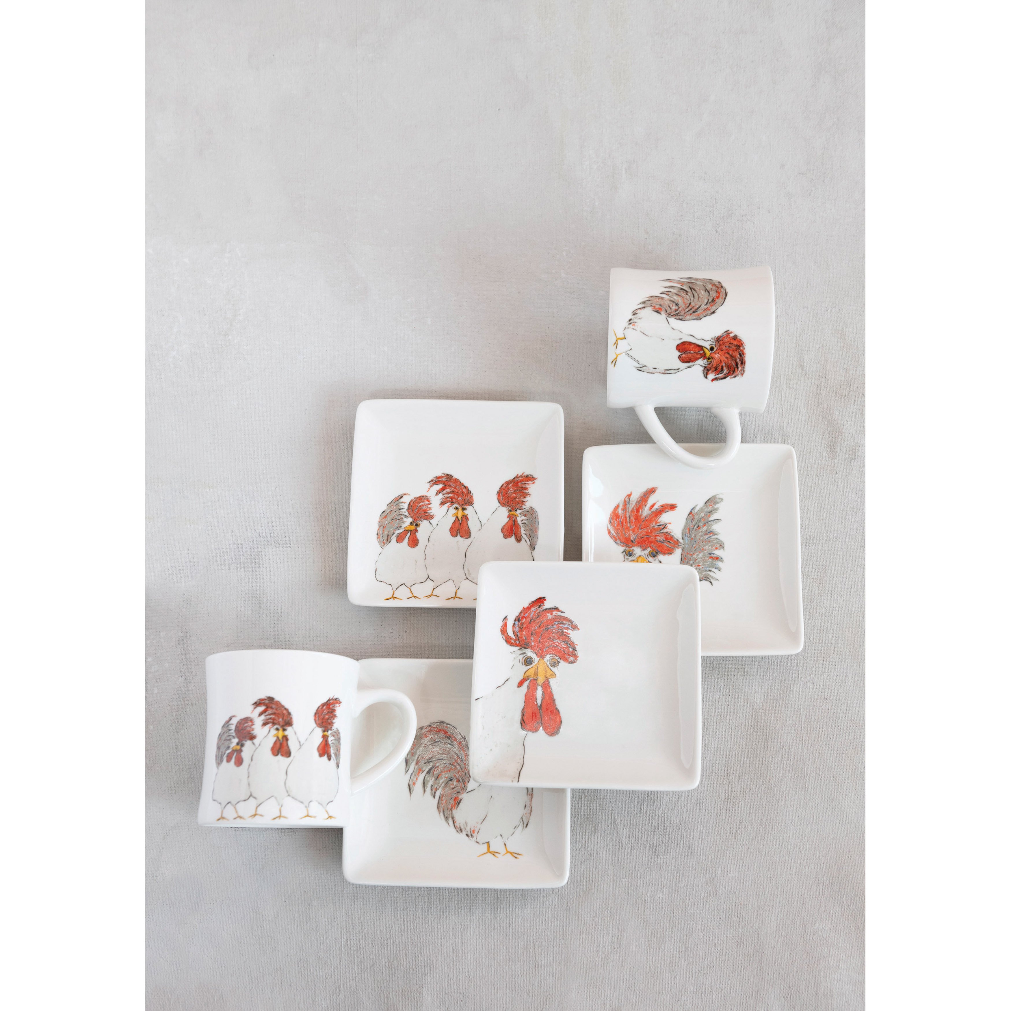 Catalog Name: 5" Square Stoneware Plate w/ Chicken, Multi Color, 4 Styles ©