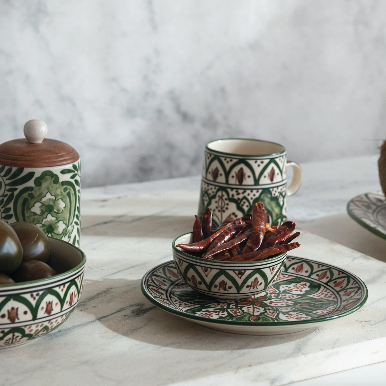 Catalog Name: 8" Round Hand-Painted Stoneware Plate w/ Design, Cream Color, Brown & Green