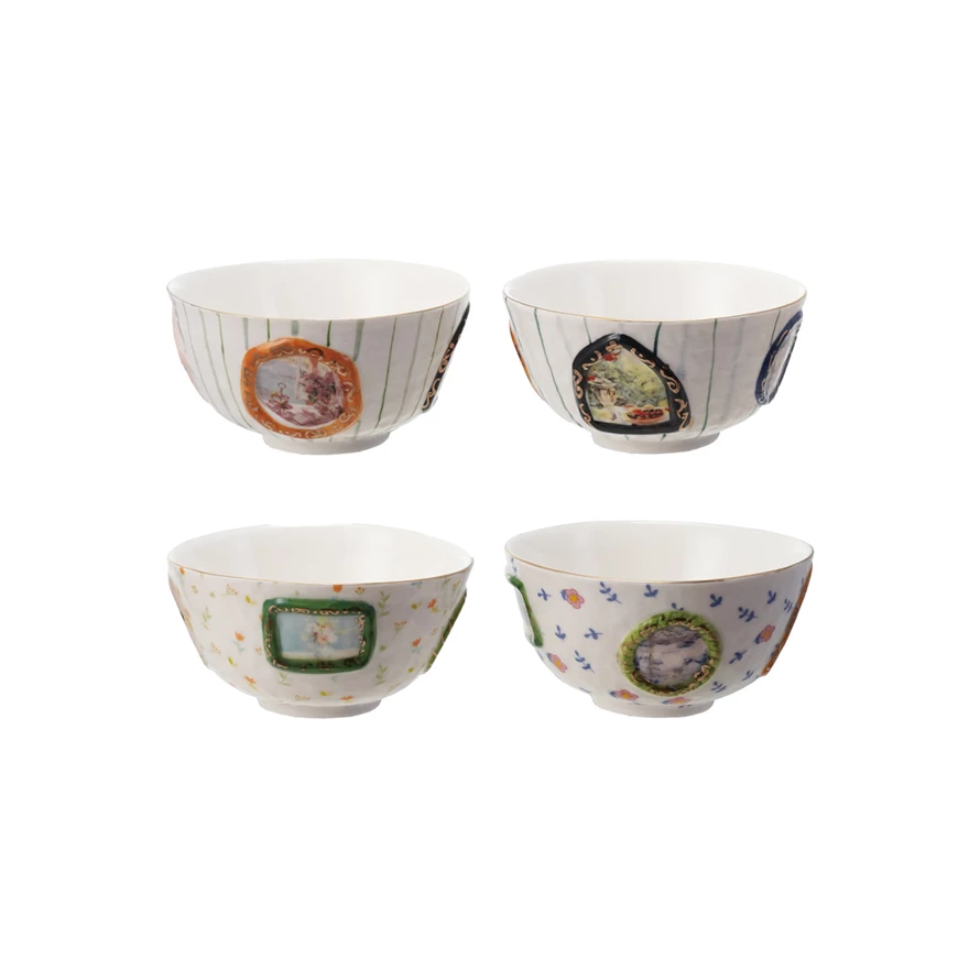 Catalog Name: 4-3/4" Round x 2-1/2"H Embossed Hand-Painted Stoneware Bowl w/ Pattern, Picture Frames & Gold Electroplating, Multi Color, 4 Styles