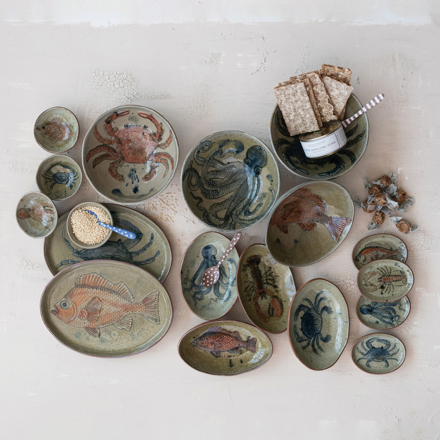 Hand-Painted Stoneware Bowl with Sea Life, 4 Styles (Each Varies)