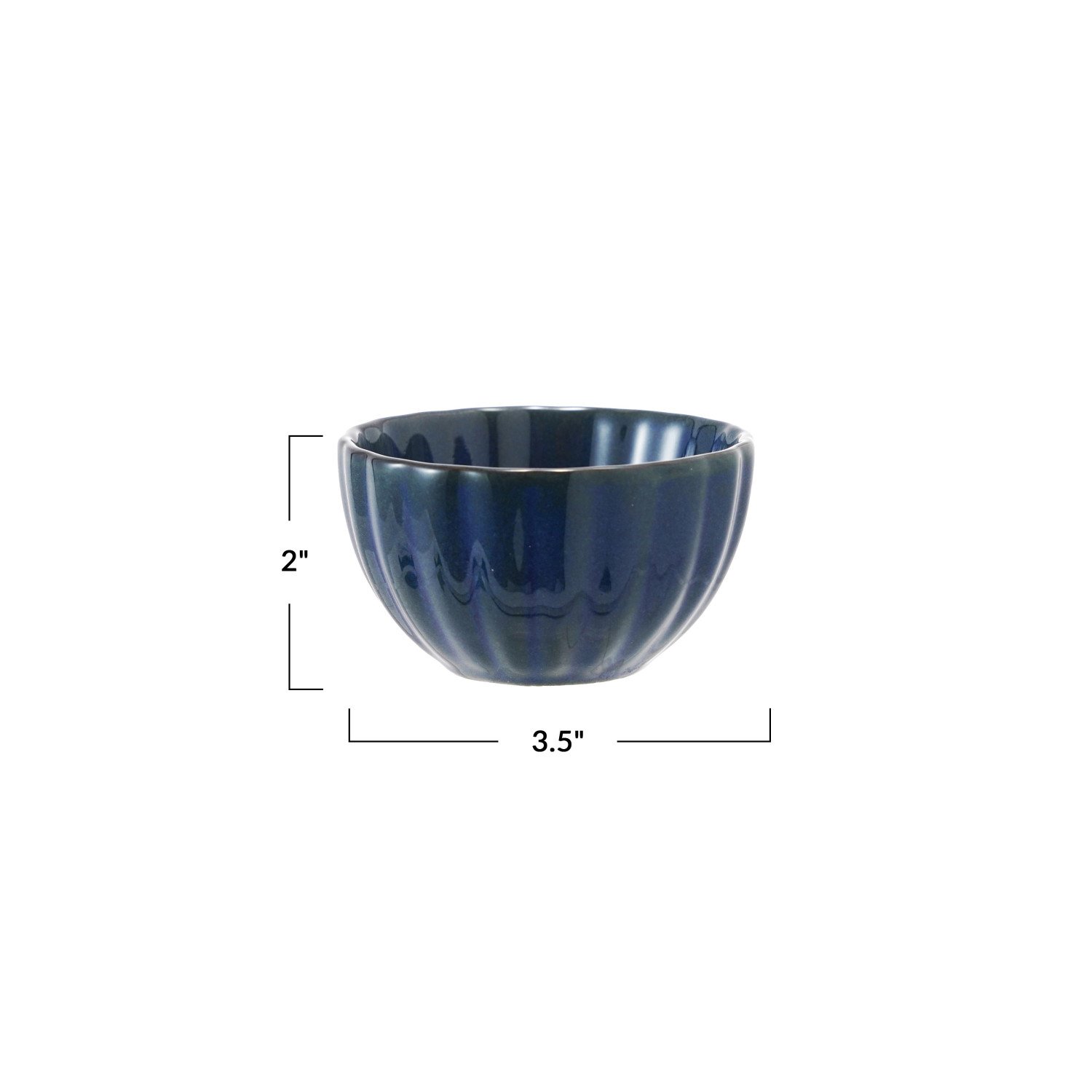 Catalog Name: 3-1/2" Round x 2"H Stoneware Ribbed Bowl, Reactive Glaze, Blue (Each One Will Vary)