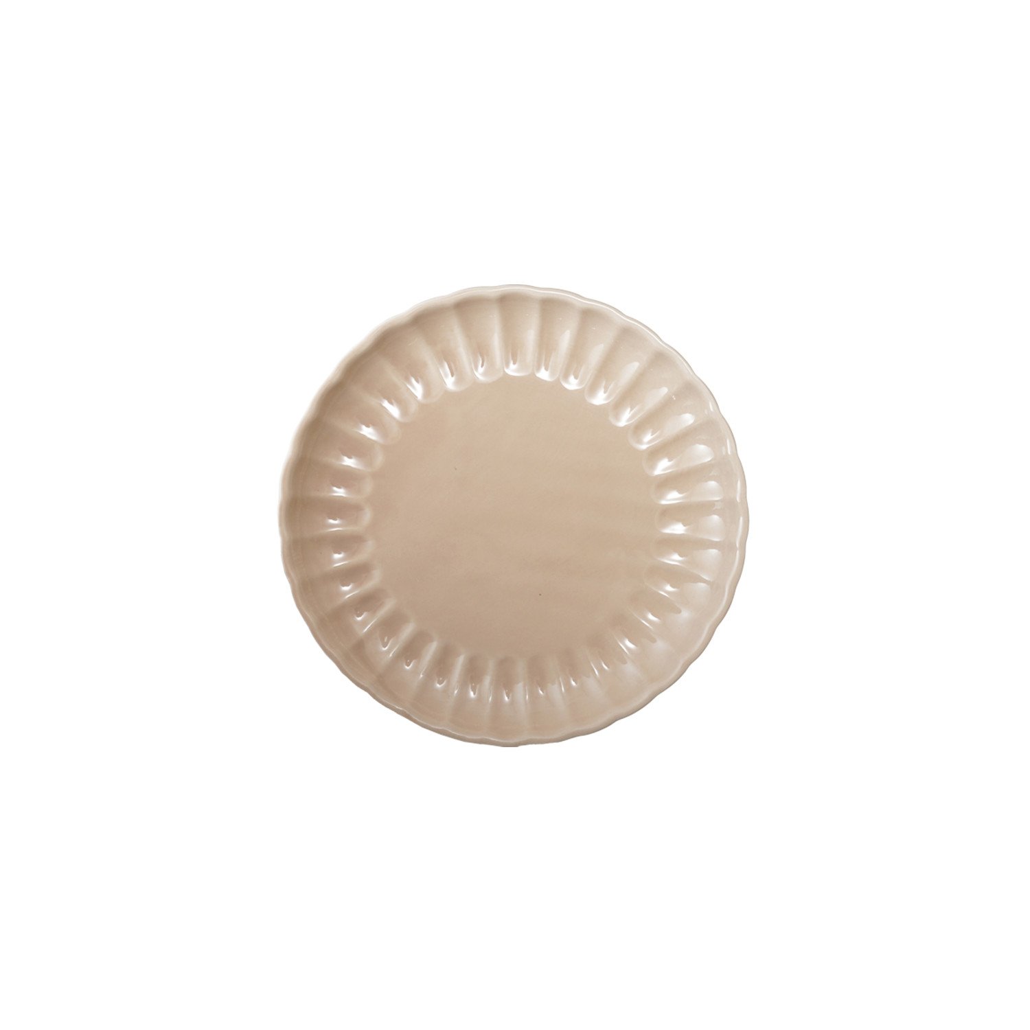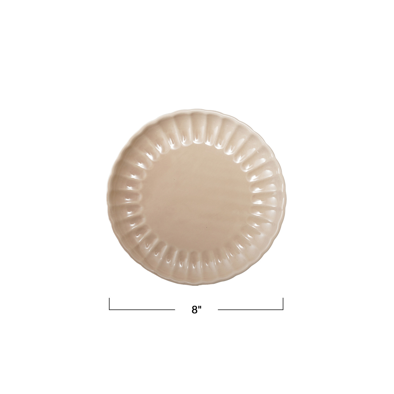 Catalog Name: 8" Round Stoneware Fluted Plate, Reactive Glaze, Cream Color (Each One Will Vary)