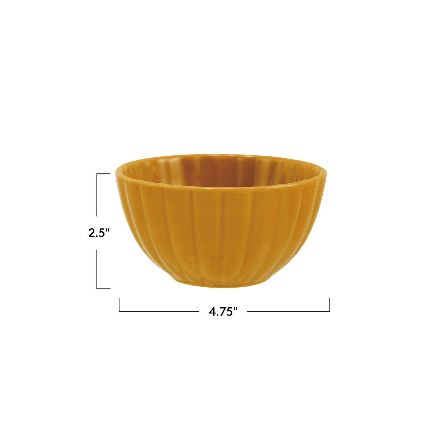 Catalog Name: 4-3/4" Round x 2-1/2"H Stoneware Ribbed Bowl, Reactive Glaze, Mustard Color (Each One Will Vary)