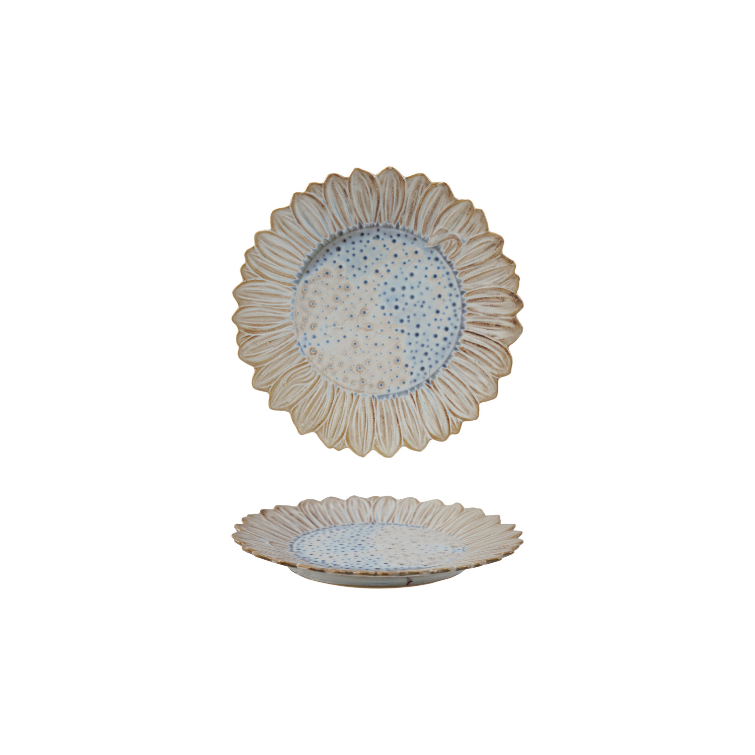 Stoneware Flower Shaped Plate, Reactive Glaze, White & Blue (Each One Will Vary)