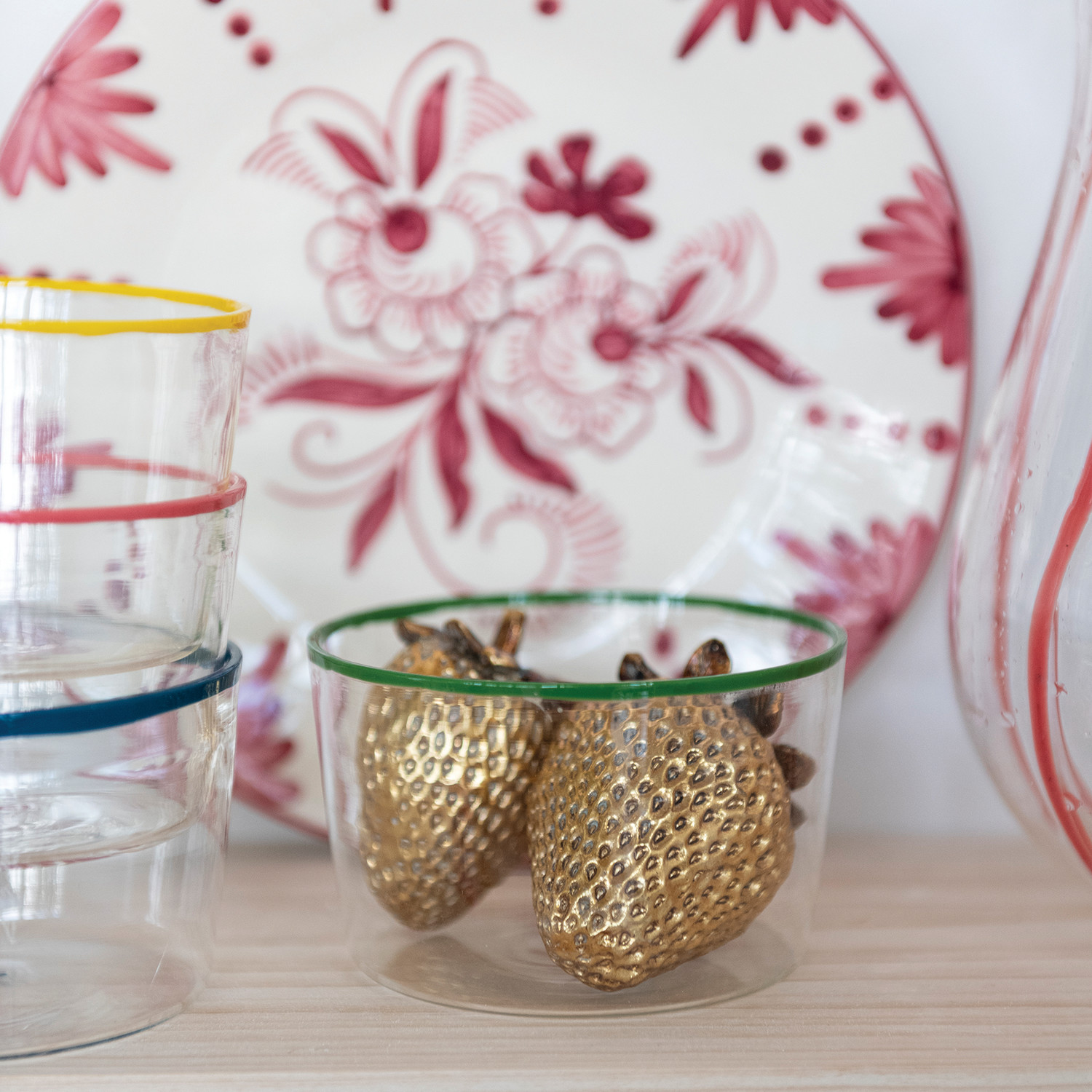 Glass Bowl with Colored Edge, 4 Colors (Each One Will Vary)