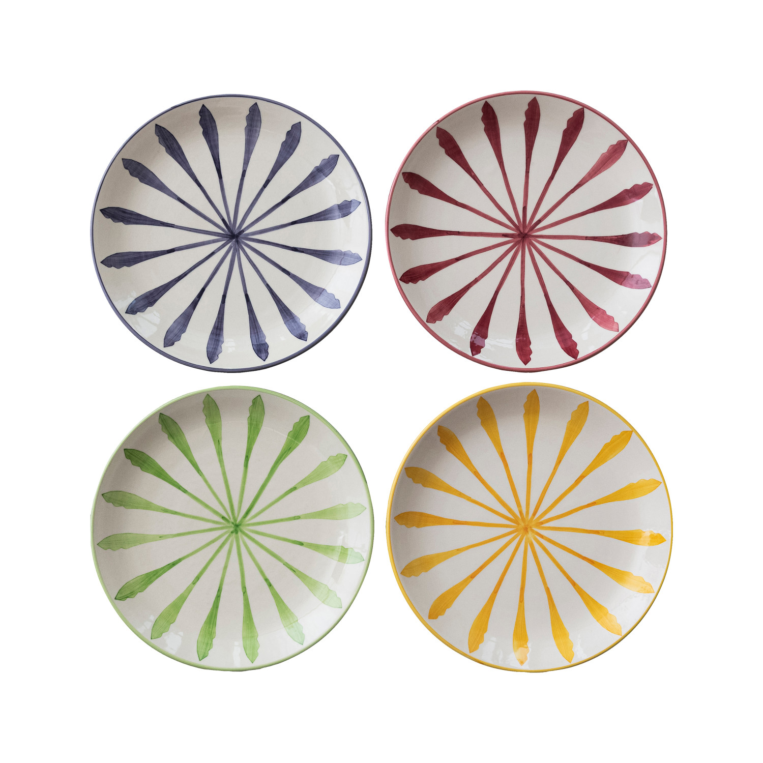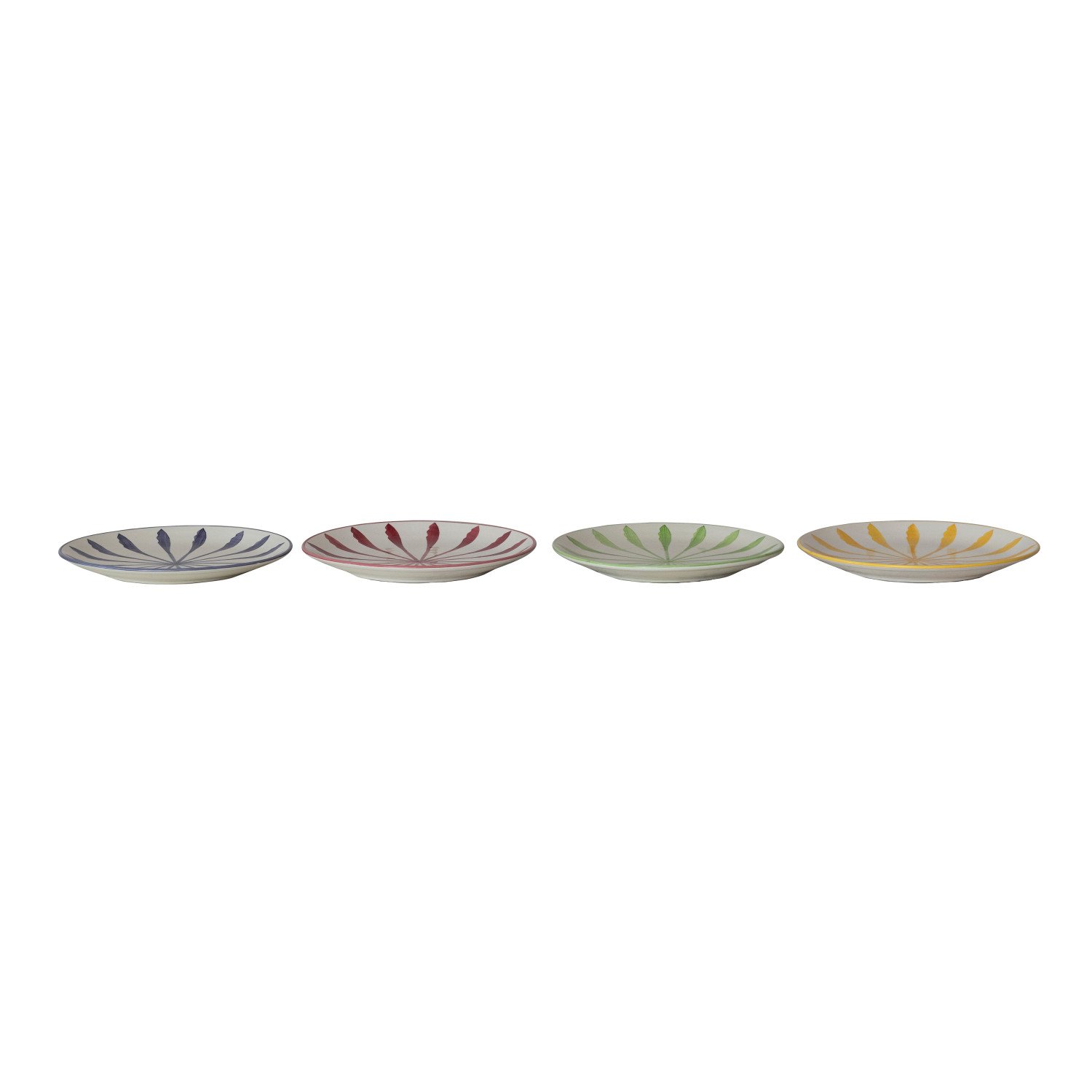 Hand-Painted Stoneware Plate with Design, 4 Colors (Each One Will Vary)