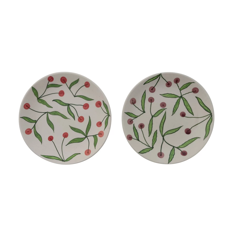 Catalog Name: 7-1/2" Round Hand-Painted Stoneware Plate w/ Cherries, 2 Colors (Each One Will Vary)