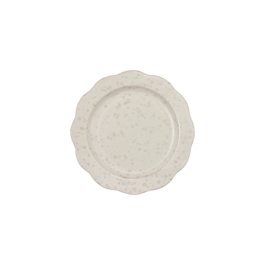 Stoneware Scalloped Plate, White Speckled (Each One Will Vary)