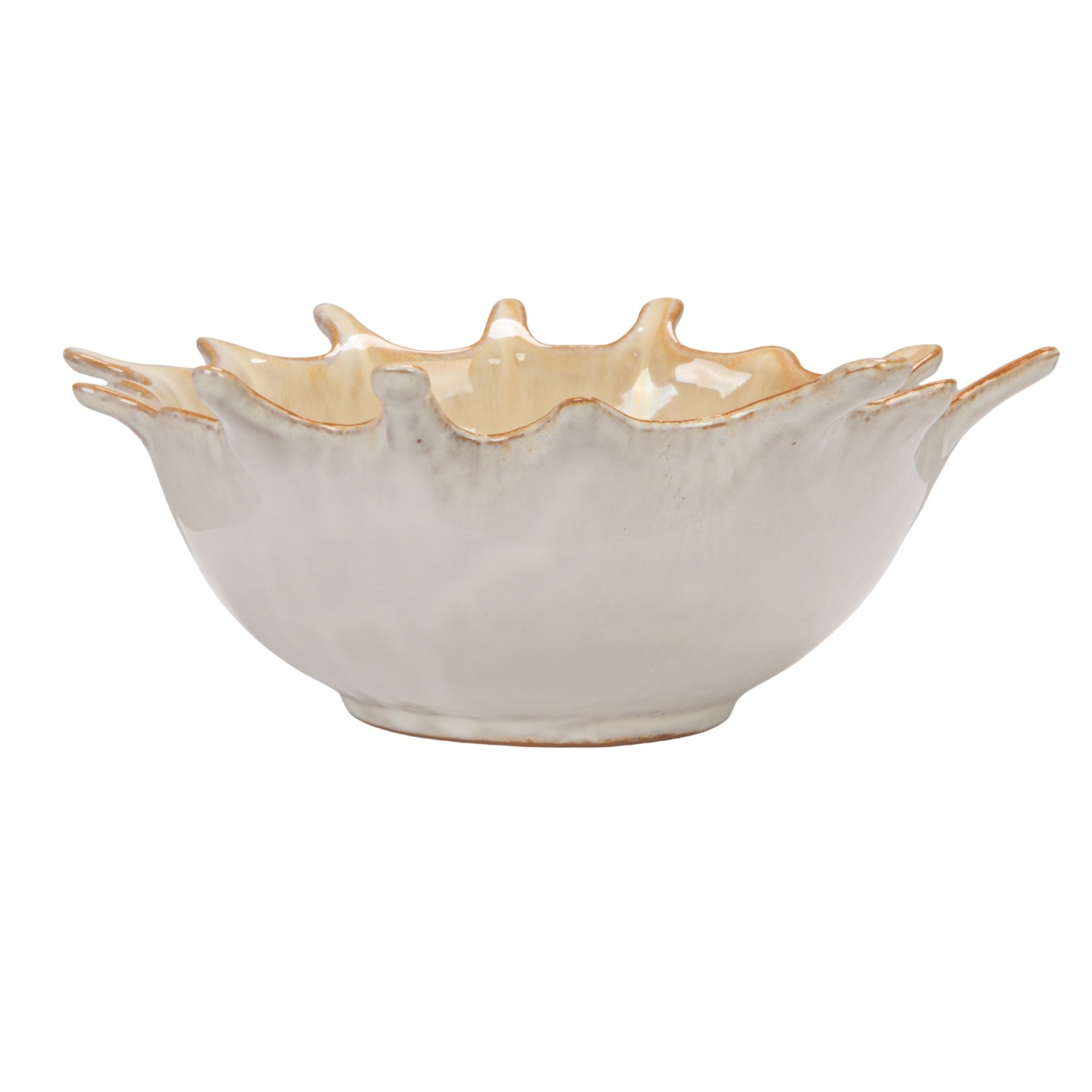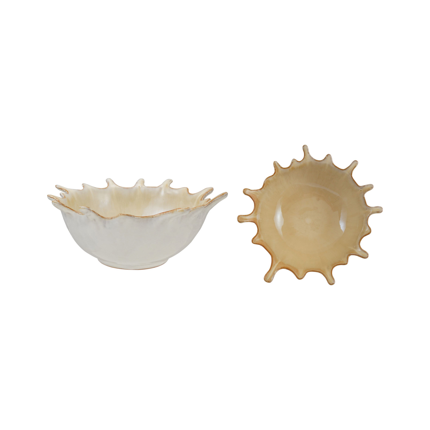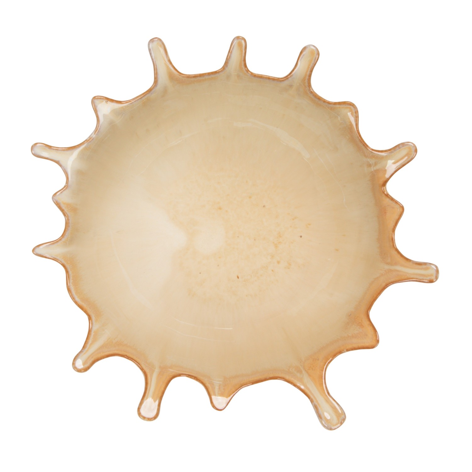 Catalog Name: 9-1/4"L x 8-1/4"W x 3-1/4"H Stoneware Sunburst Bowl, Reactive Glaze, Cream Color (Each One Will Vary)