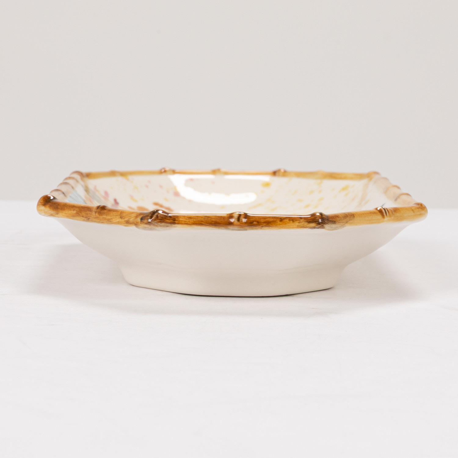 Hand-Painted Stoneware Octagon Shaped Plate with House, Tree & Bamboo Style Edge
