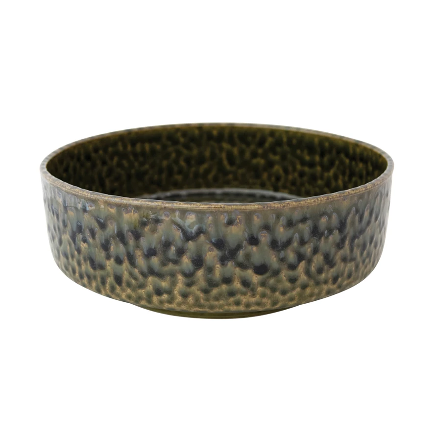 Catalog Name: 11" Round x 4-1/4"H Stoneware Bowl/Planter, Reactive Glaze, Green (Each One Will Vary)