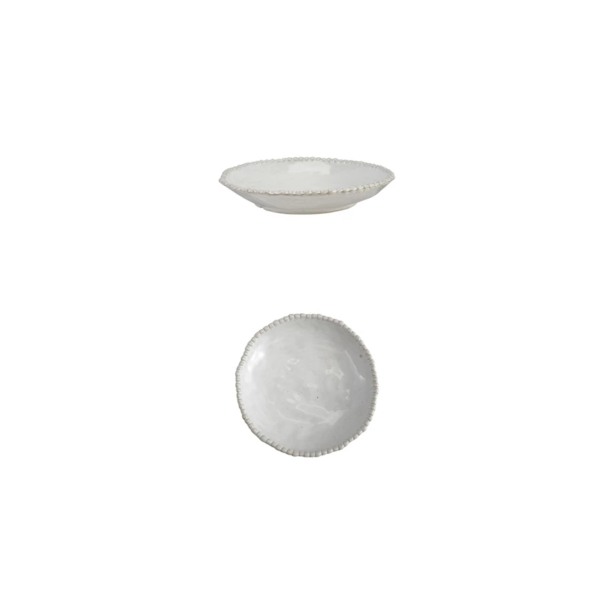 Stoneware Low Bowl with Hobnail Rim, White (Each One Will Vary)