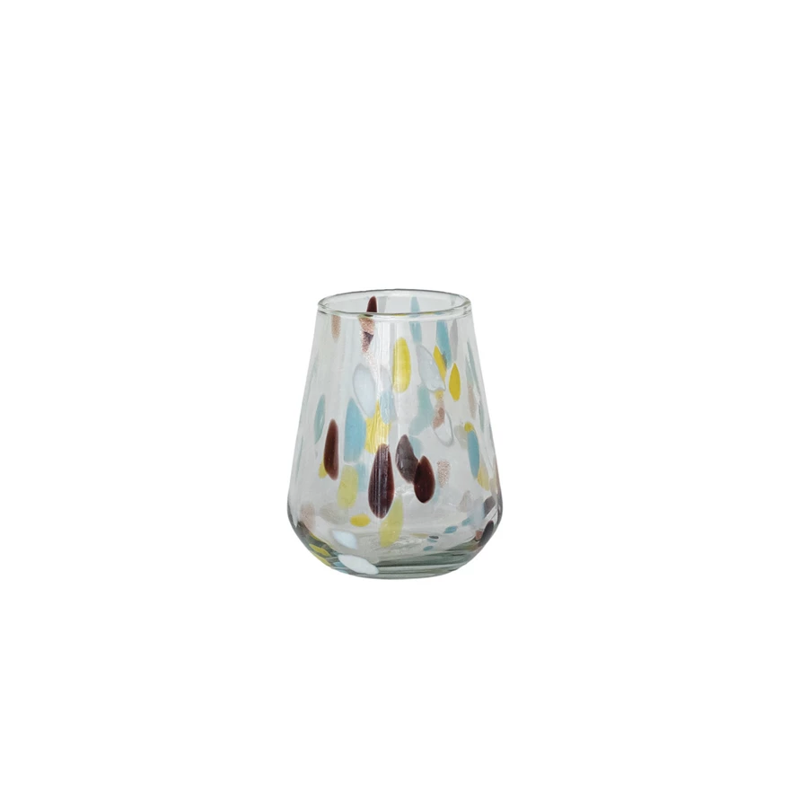 Catalog Name: 3-1/2" Round x 4-1/4"H 12 oz. Hand-Blown Confetti Drinking Glass, Multi Color