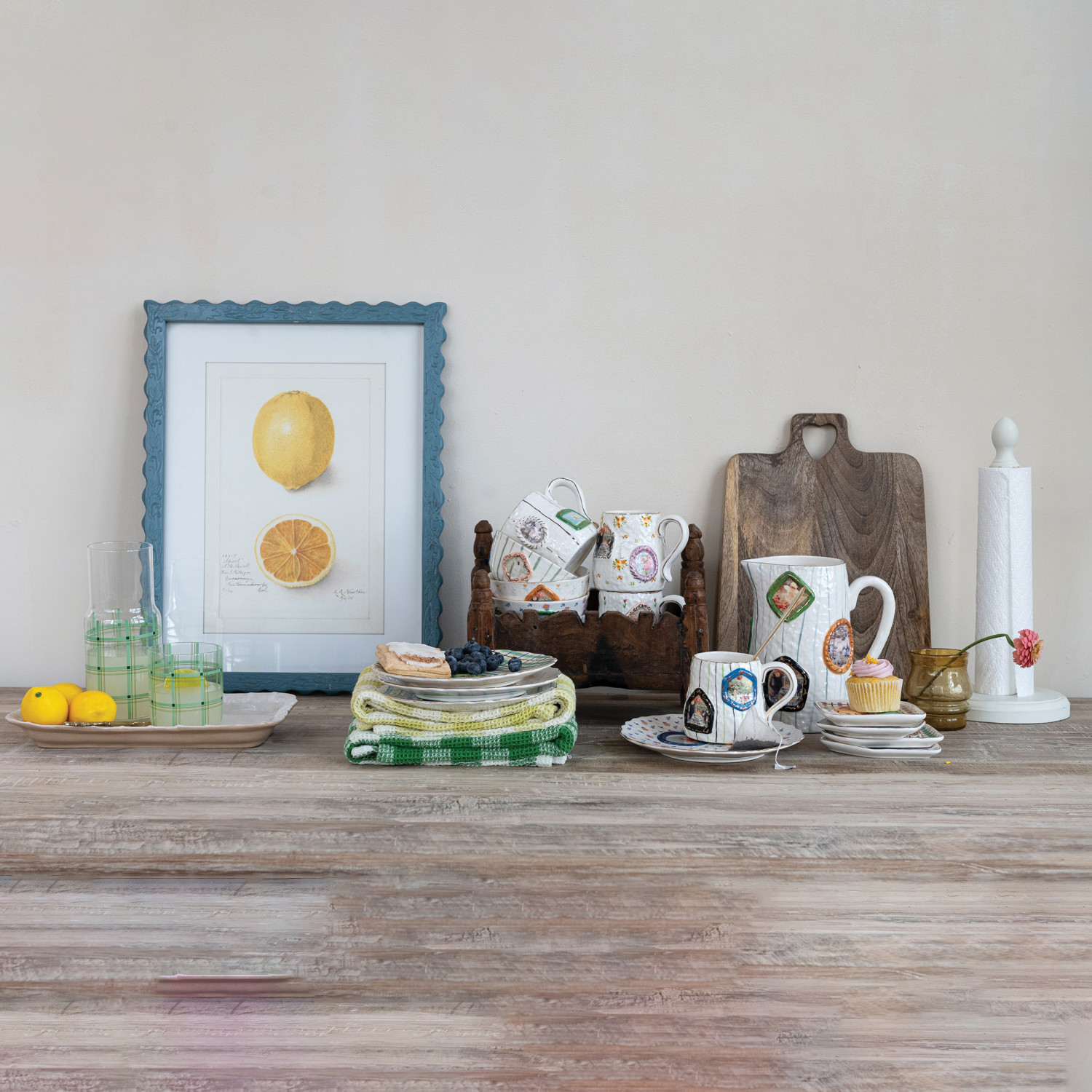 Catalog Name: 3-1/2" Round x 9-1/4"H 32 oz. Glass Carafe w/ 12 oz. Drinking Glass & Plaid Pattern, Green, Set of 2