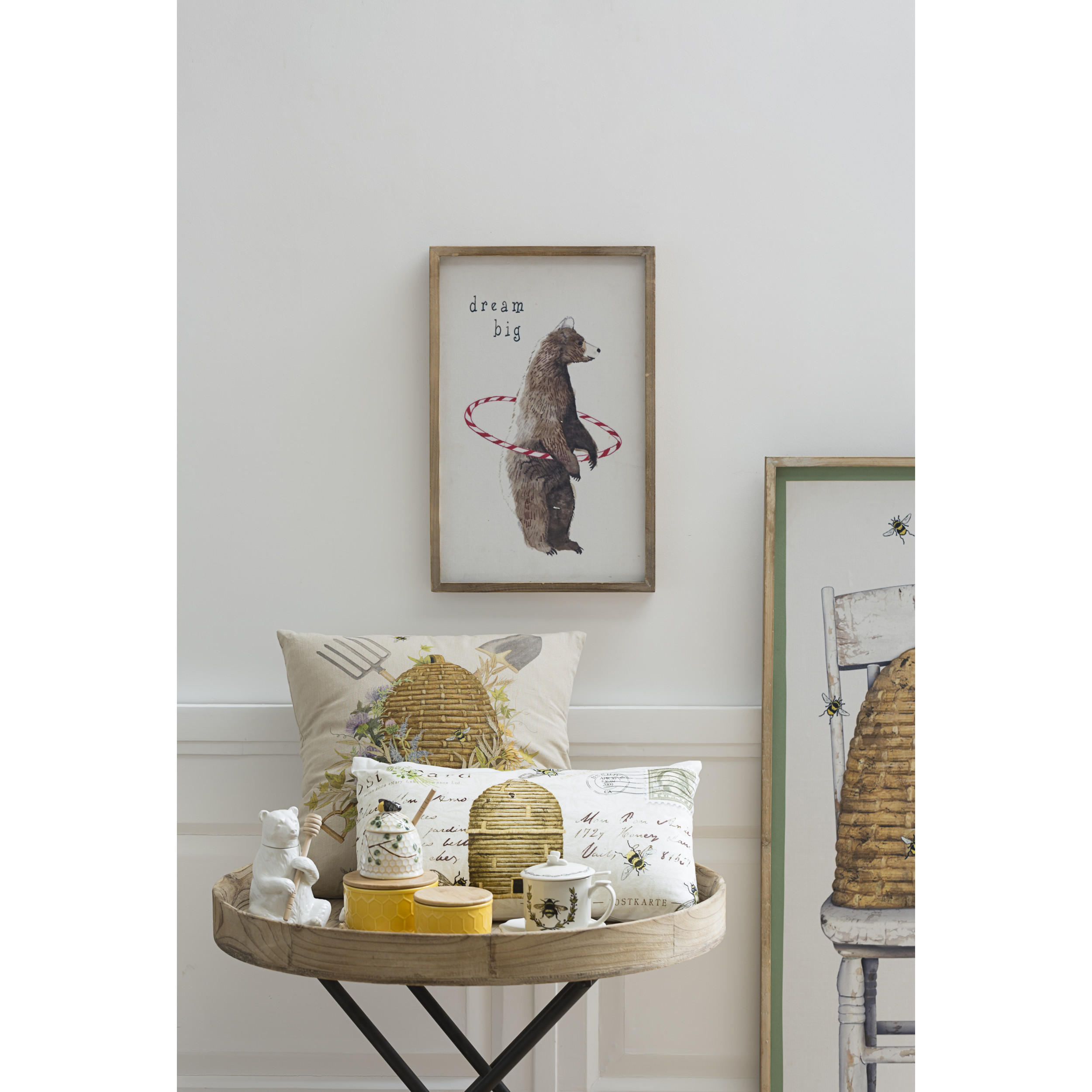 Honey should be served in this white bear shaped pot. Our friendly bear is holding the bamboo dipper until it is needed again. This honey pot can be left out in the kitchen as part of its decor.