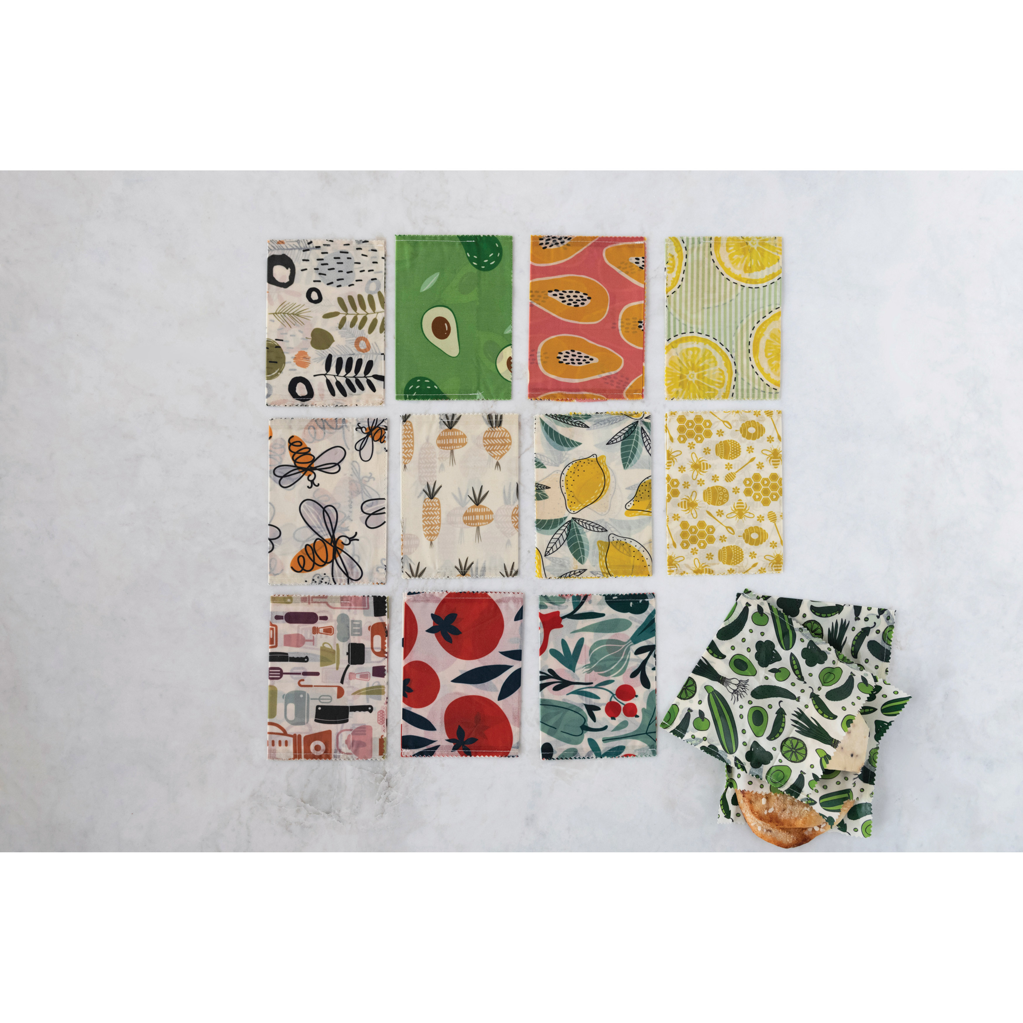 Catalog Name: 10"L x 7"H & 8-3/4"L x 7"H Reusable Fabric Beeswax Food Bags w/ Prints, Set of 2, 12 Styles