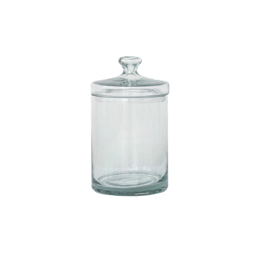 This Round Cup Glass Jar with Lid is a blend of functionality and decorative appeal. The clear glass allows for easy identification of the contents, while the embossed design adds a touch of sophistication. Whether used to store kitchen essentials or as an elegant way to display collectibles, this jar fits seamlessly into a variety of decor styles. It measures 4.25 inches in diameter and 7.5 inches in height, offering ample space for storage needs. Its round shape and size are perfect for both practical storage and aesthetic display, making it a versatile addition to any farmhouse, French country, or vintage setting. The jar's classic design ensures it will remain a cherished piece for years to come.
