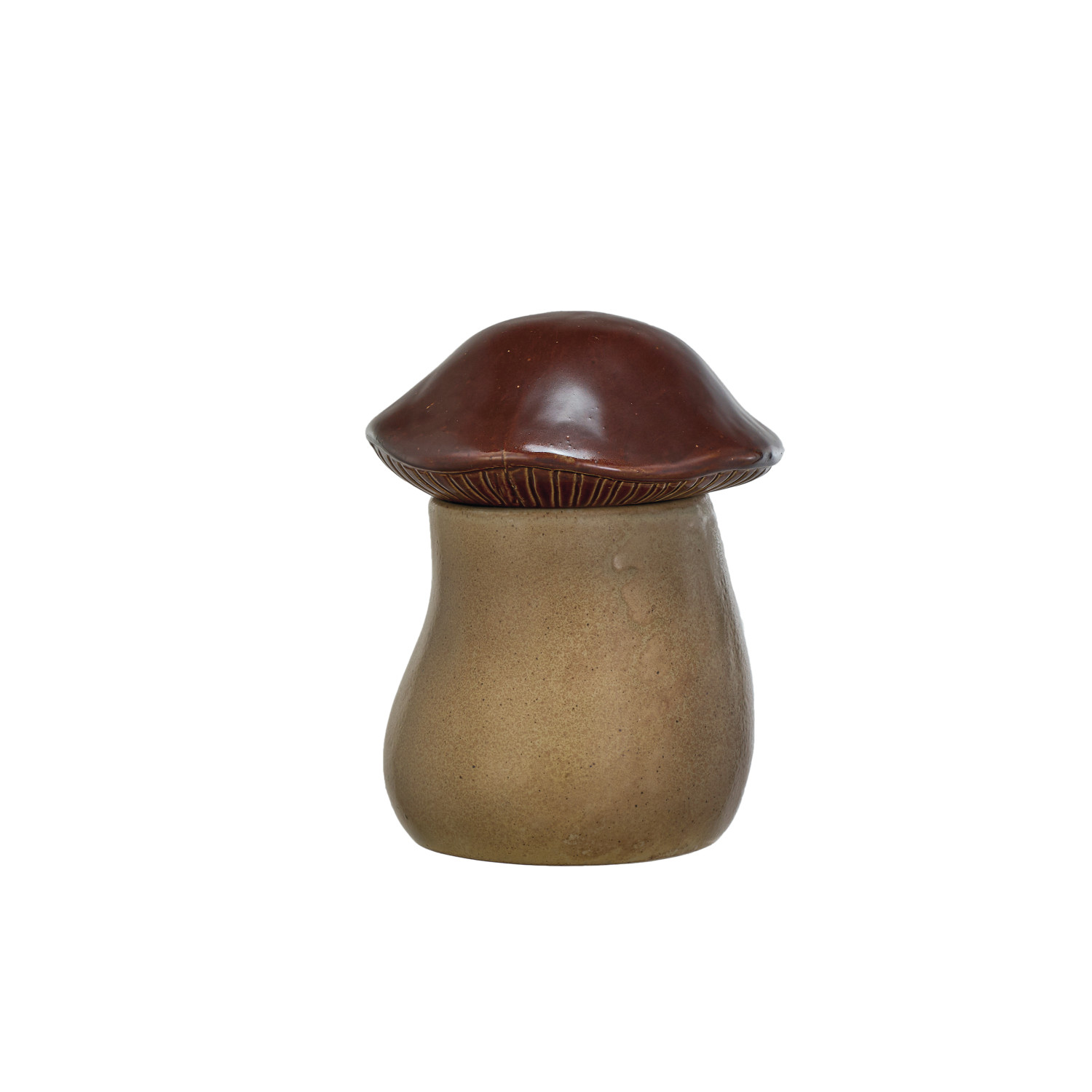 Catalog Name: 5-3/4" Round x 7"H Stoneware Mushroom Canister, Reactive Glaze, Brown & Tan Color (Each One Will Vary)