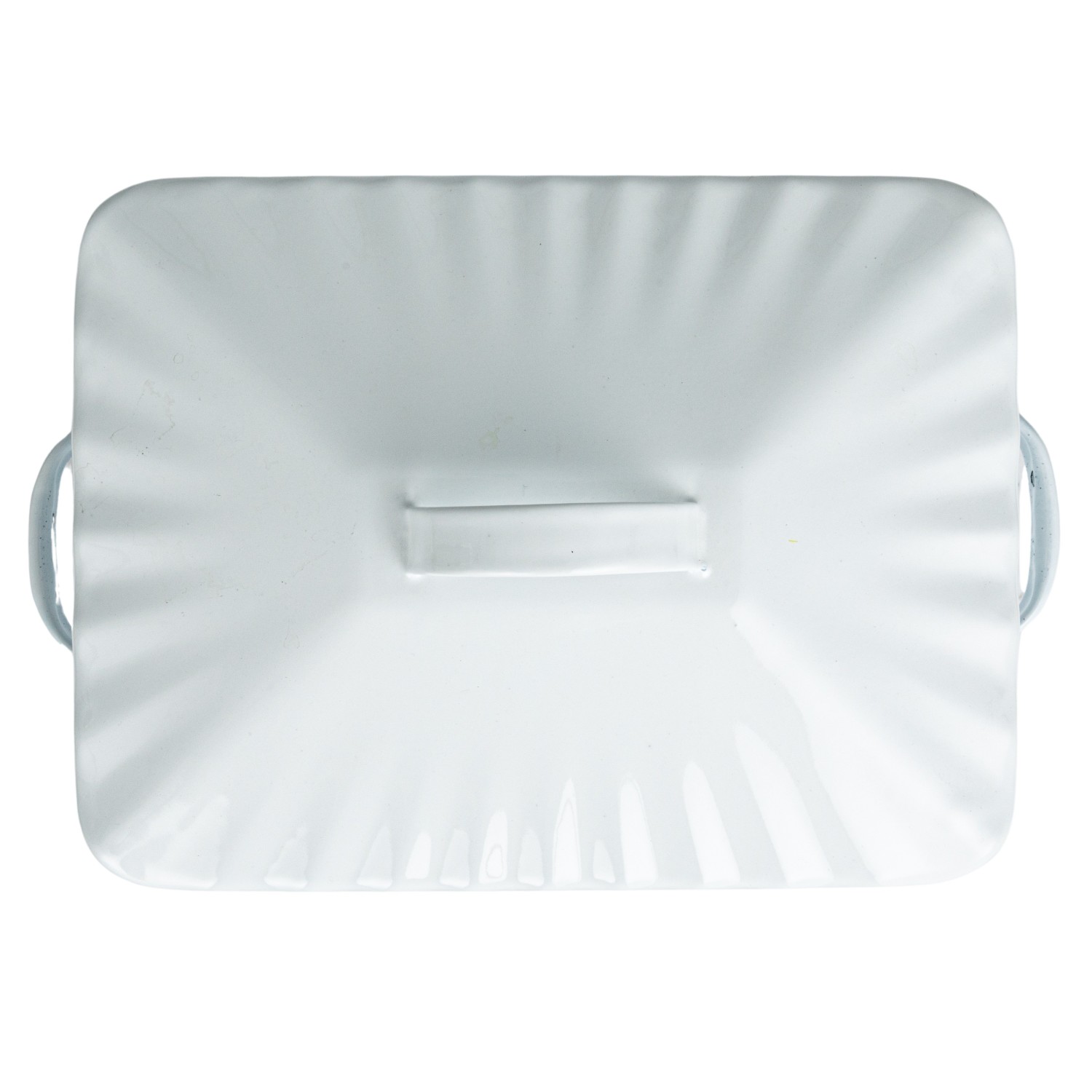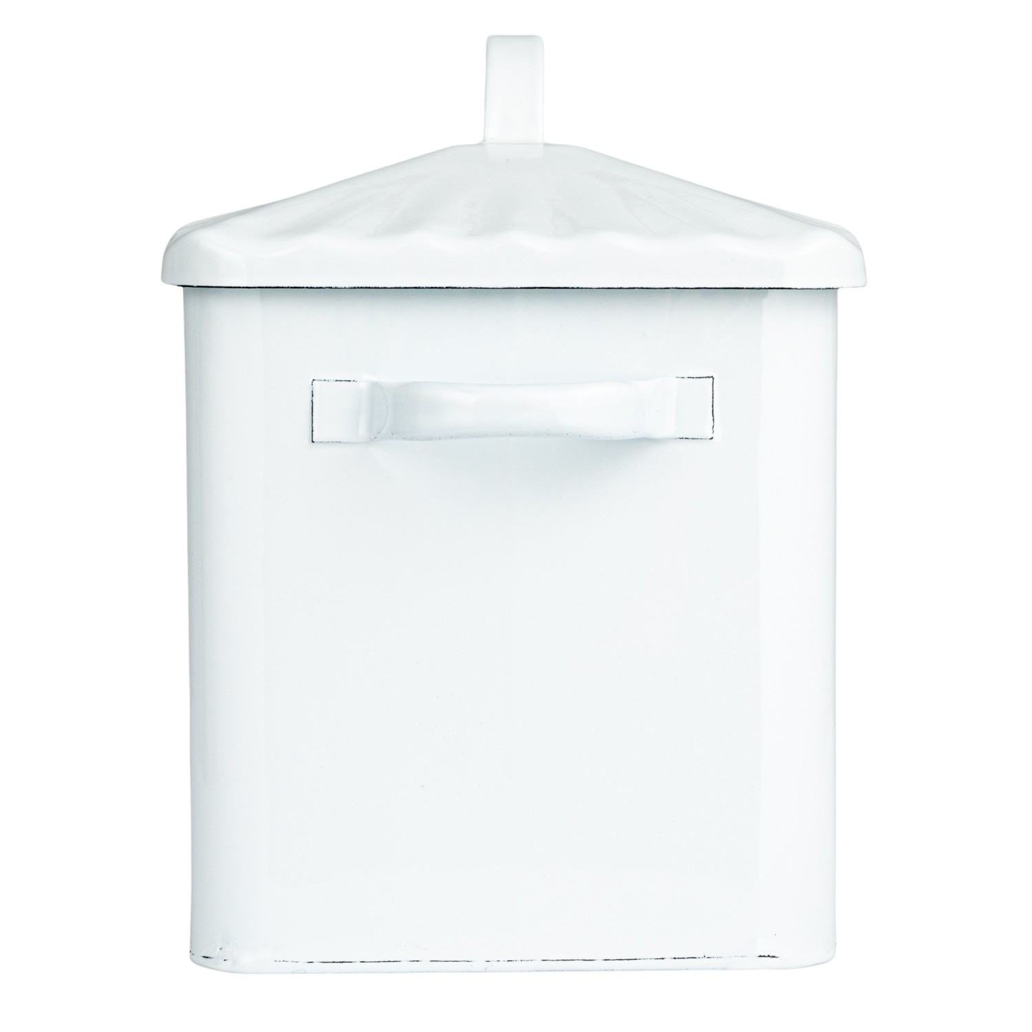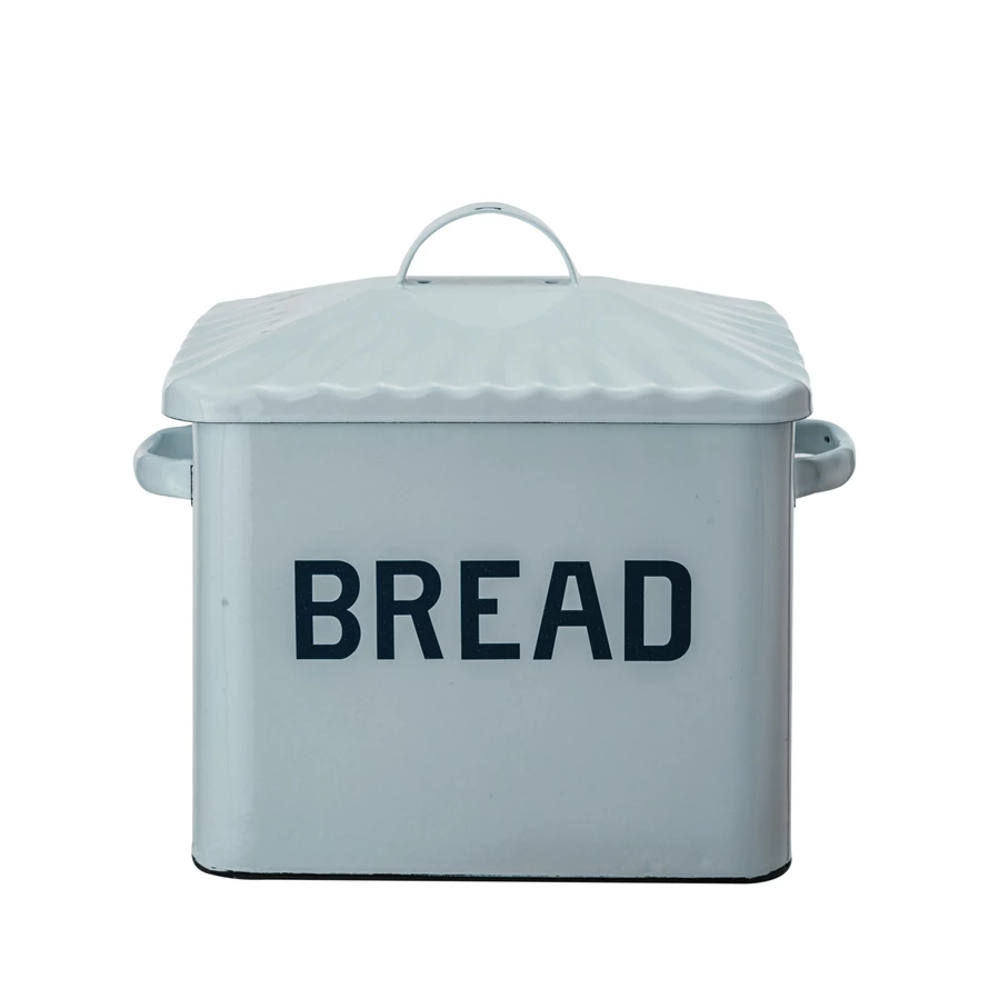 Catalog Name: 13-1/2"L x 8-1/4"W x 12"H Enameled Metal Box w/ Lid & Handles "Bread", White & Blue