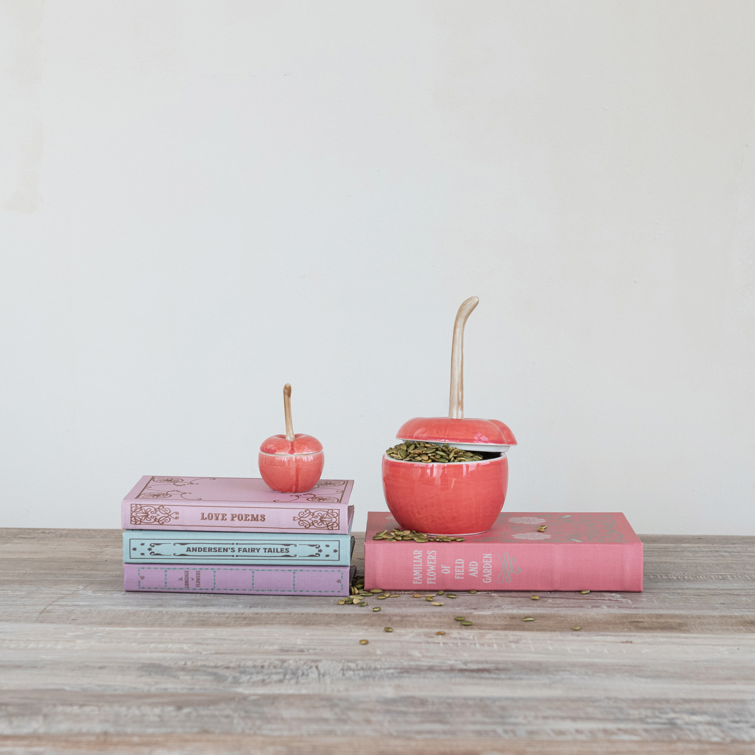 Stoneware Cherry Shaped Jar with Lid (Each Will Vary)