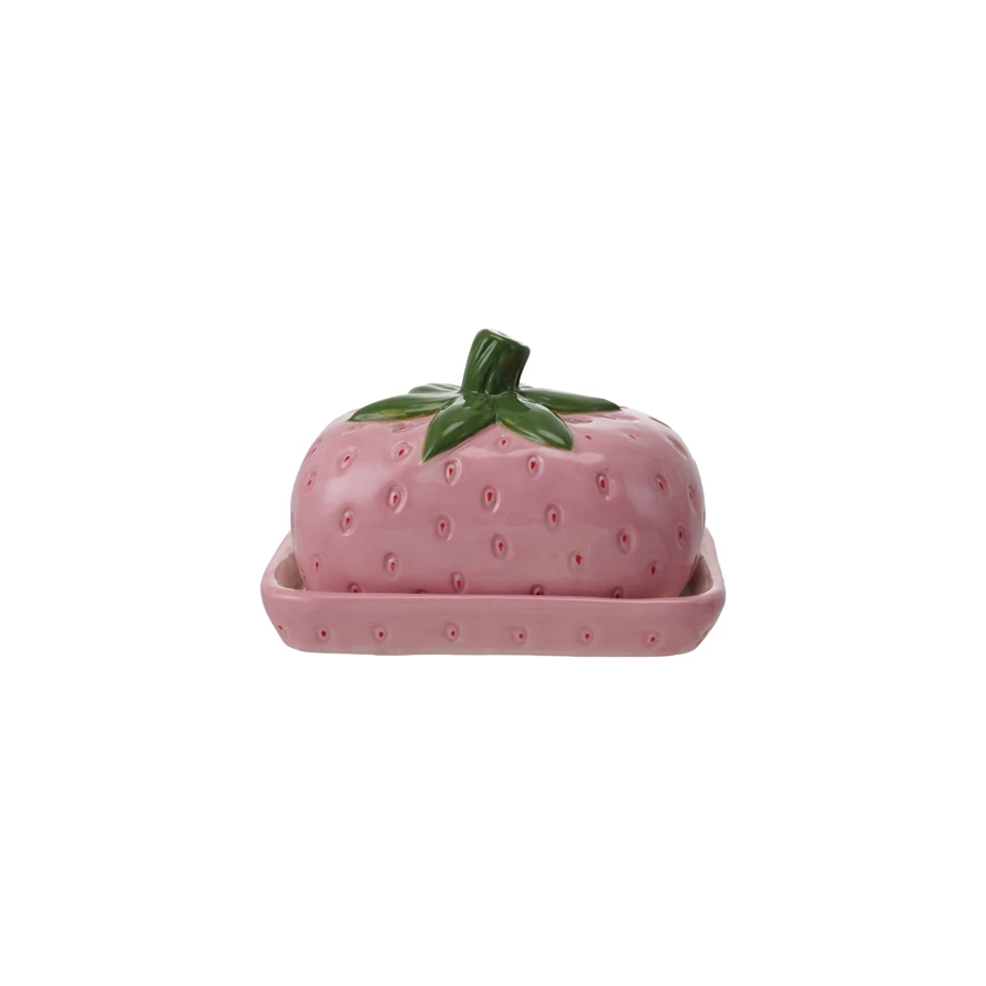 Hand-Painted Ceramic Strawberry Shaped Butter Dish