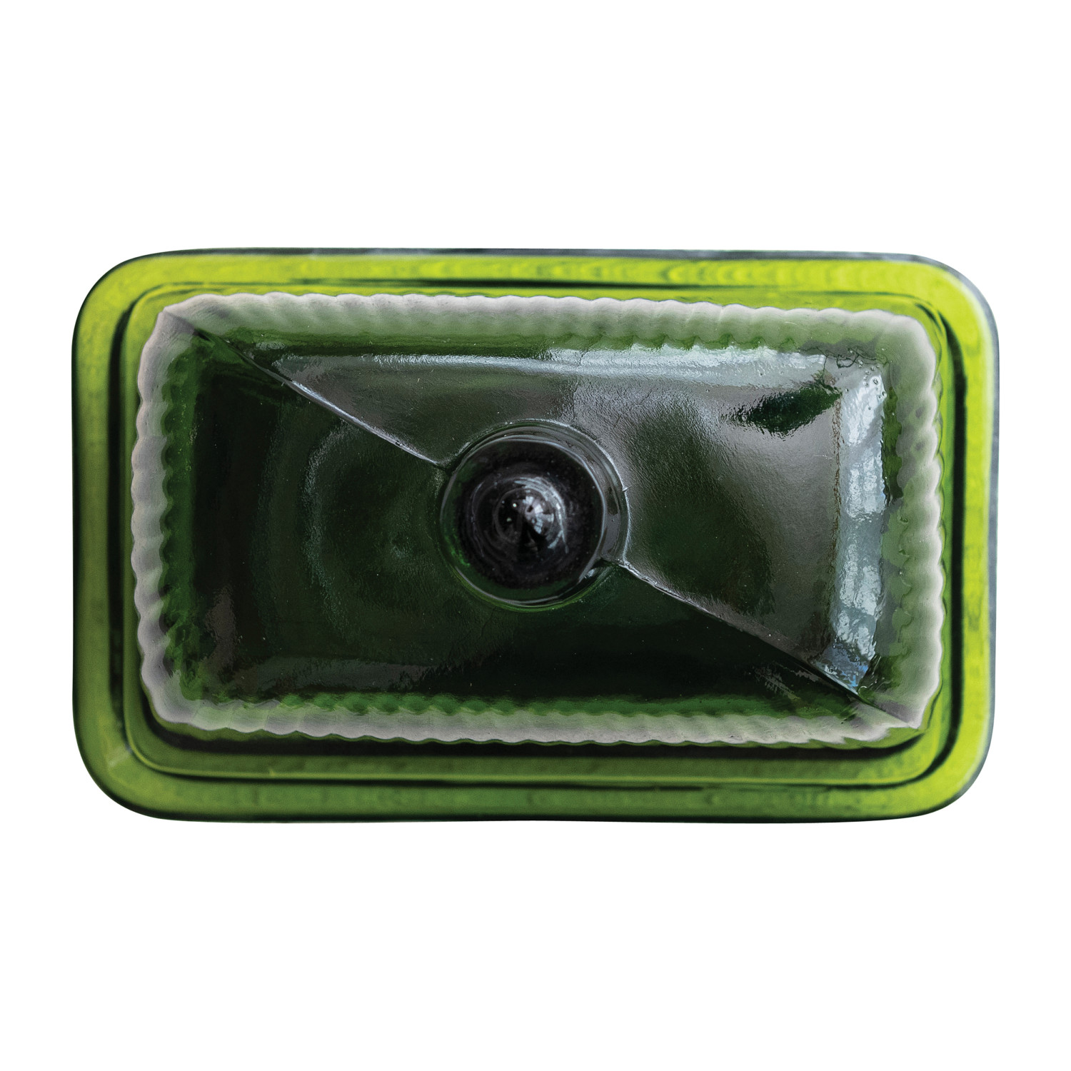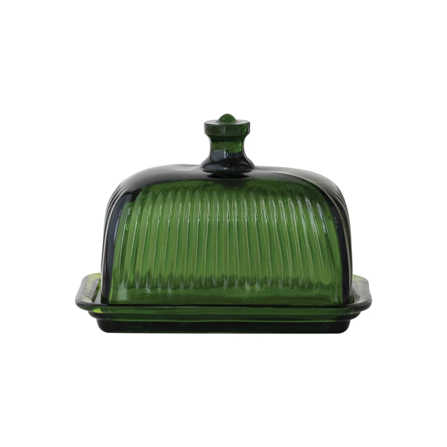 Catalog Name: 6-1/2"L x 4"W x 4-3/4"H Pressed Ribbed Glass Butter Dish, Green