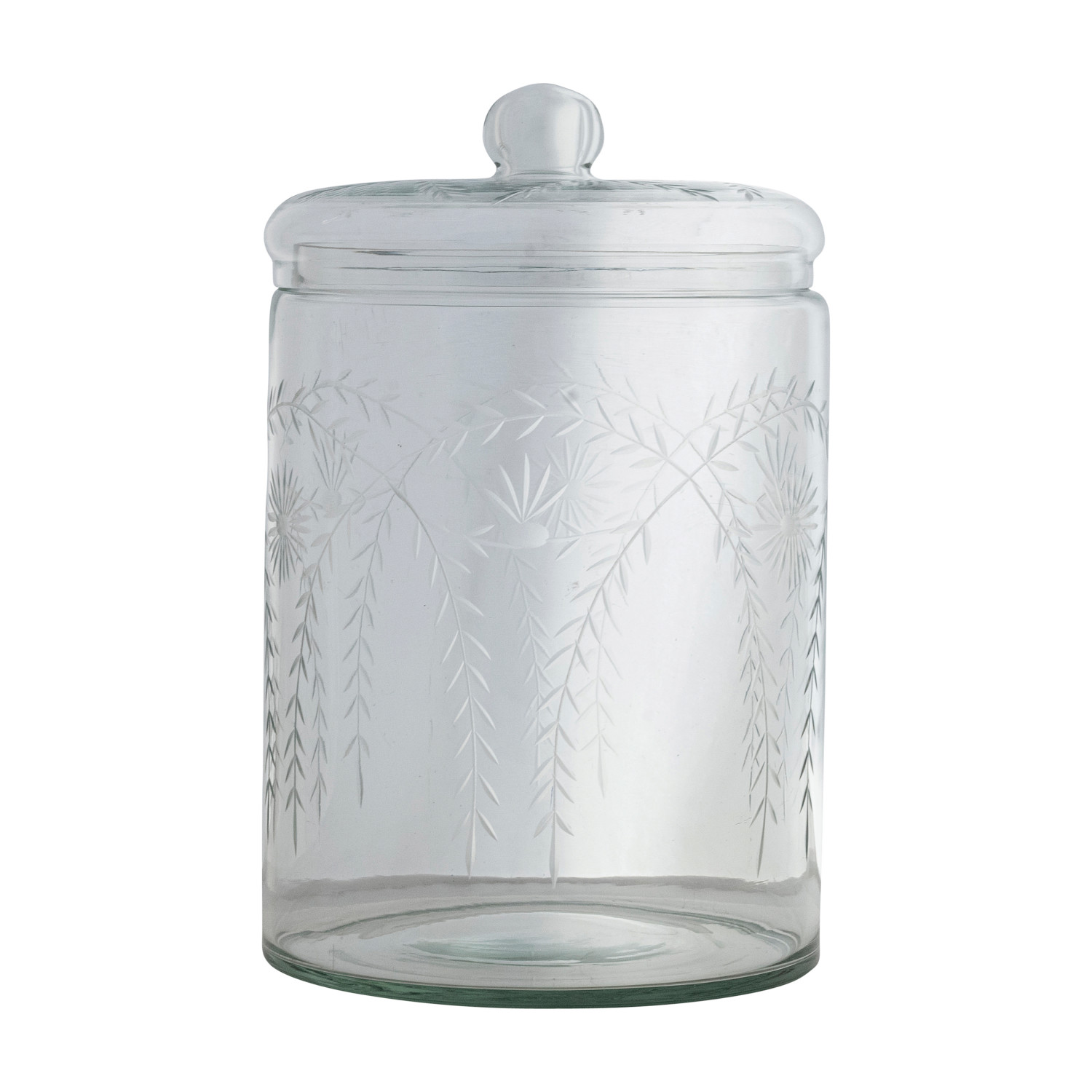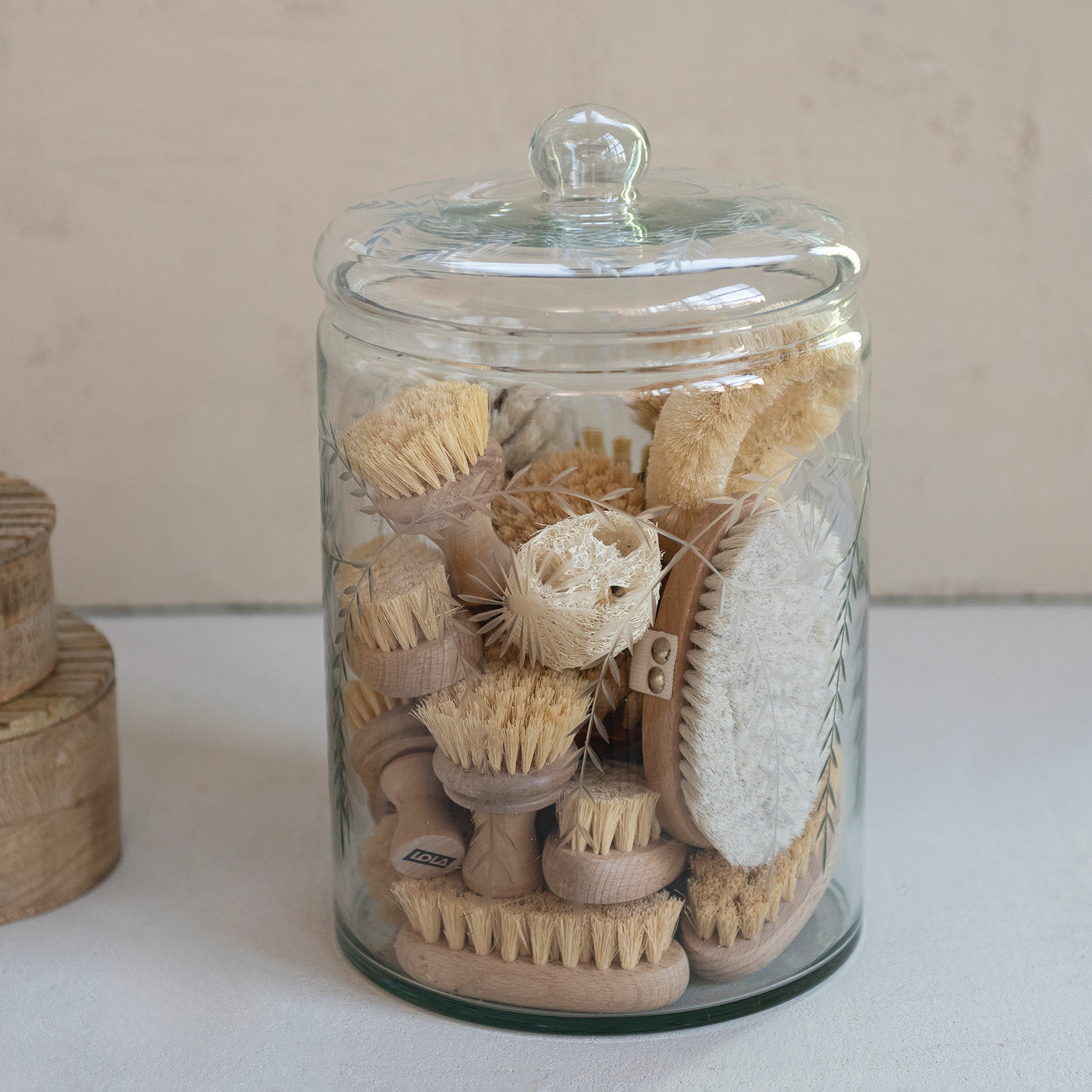 7-1/4 Quart Hand-Blown Glass Jar with Etched Botanicals & Lid