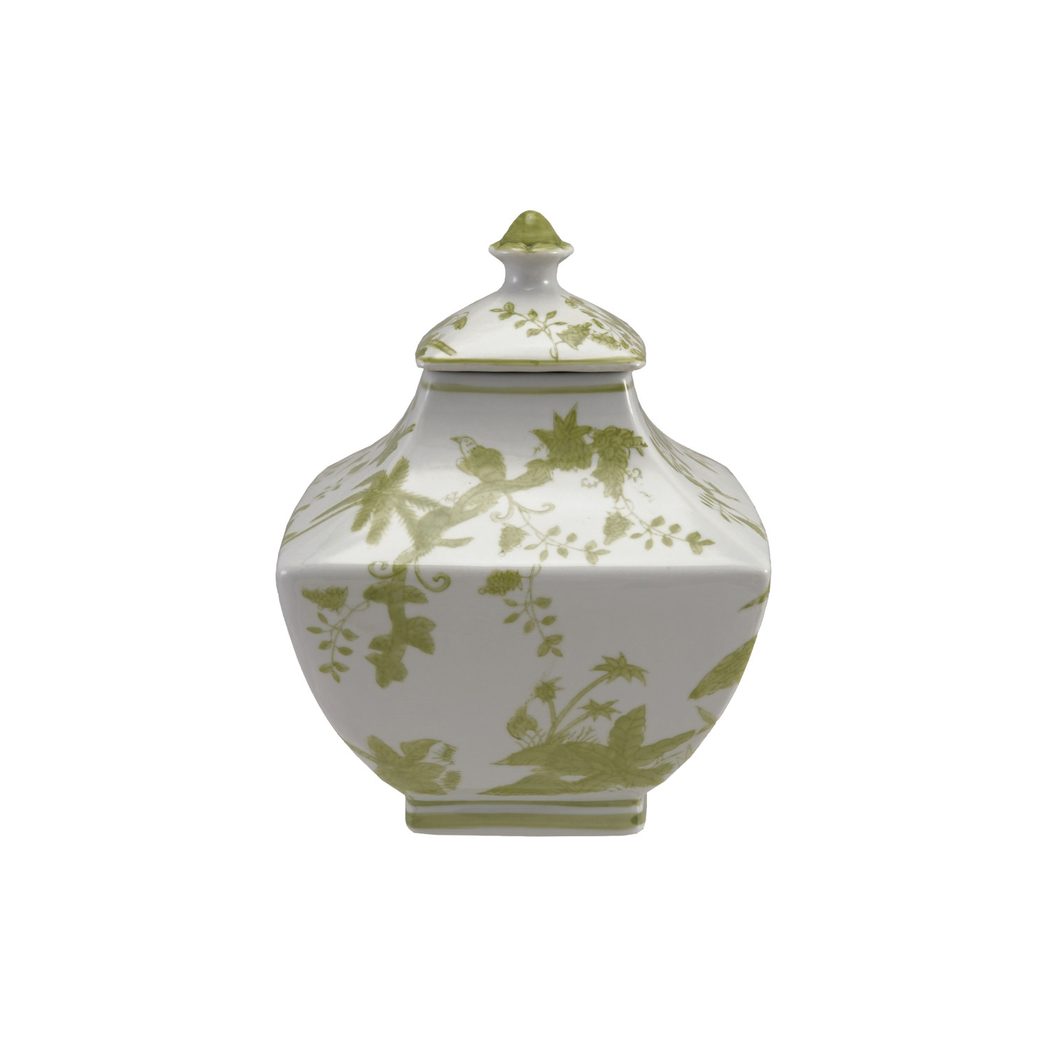 Catalog Name: 7-3/4" Square x 10"H Hand-Painted Stoneware Jar w/ Botanicals, White & Green (Each One Will Vary)