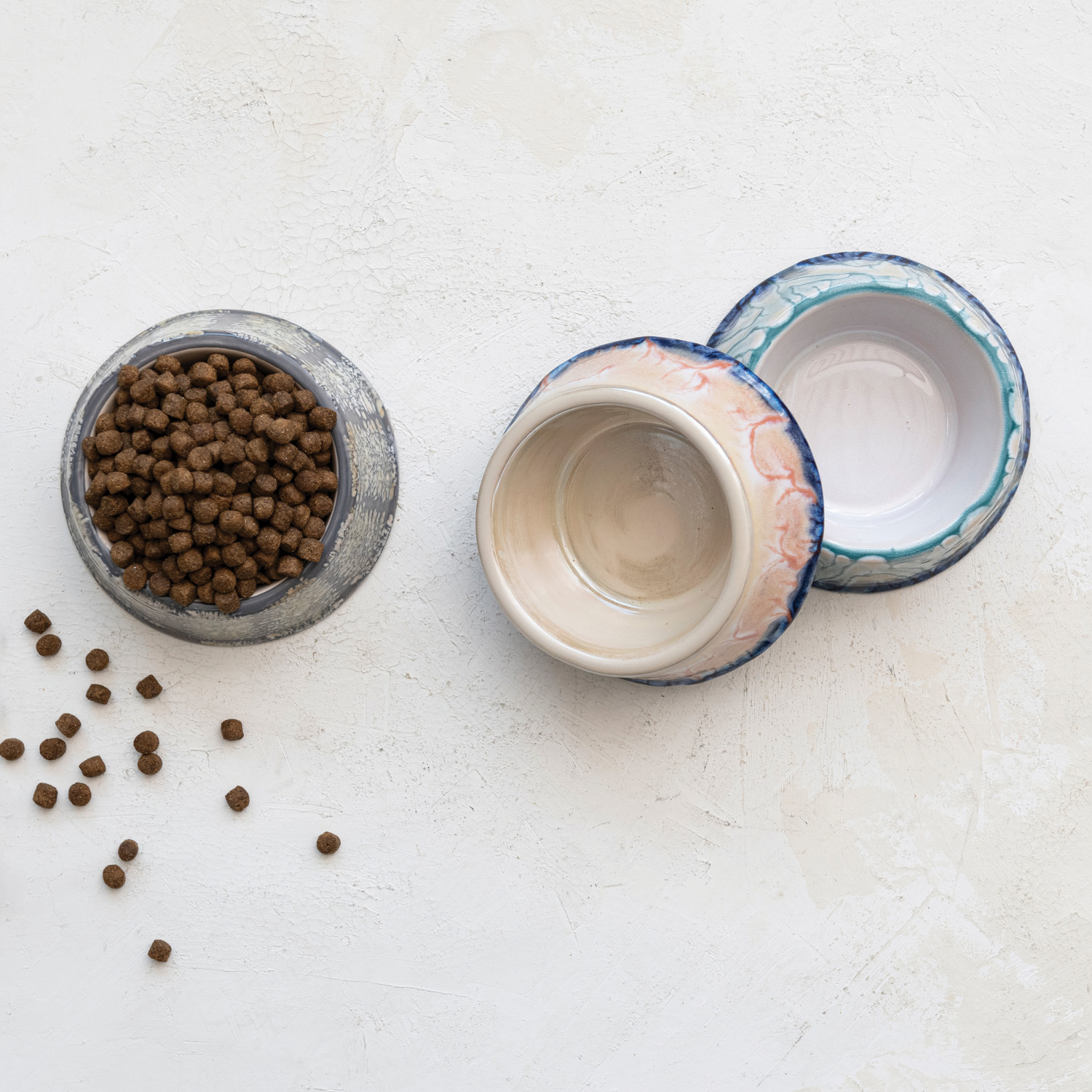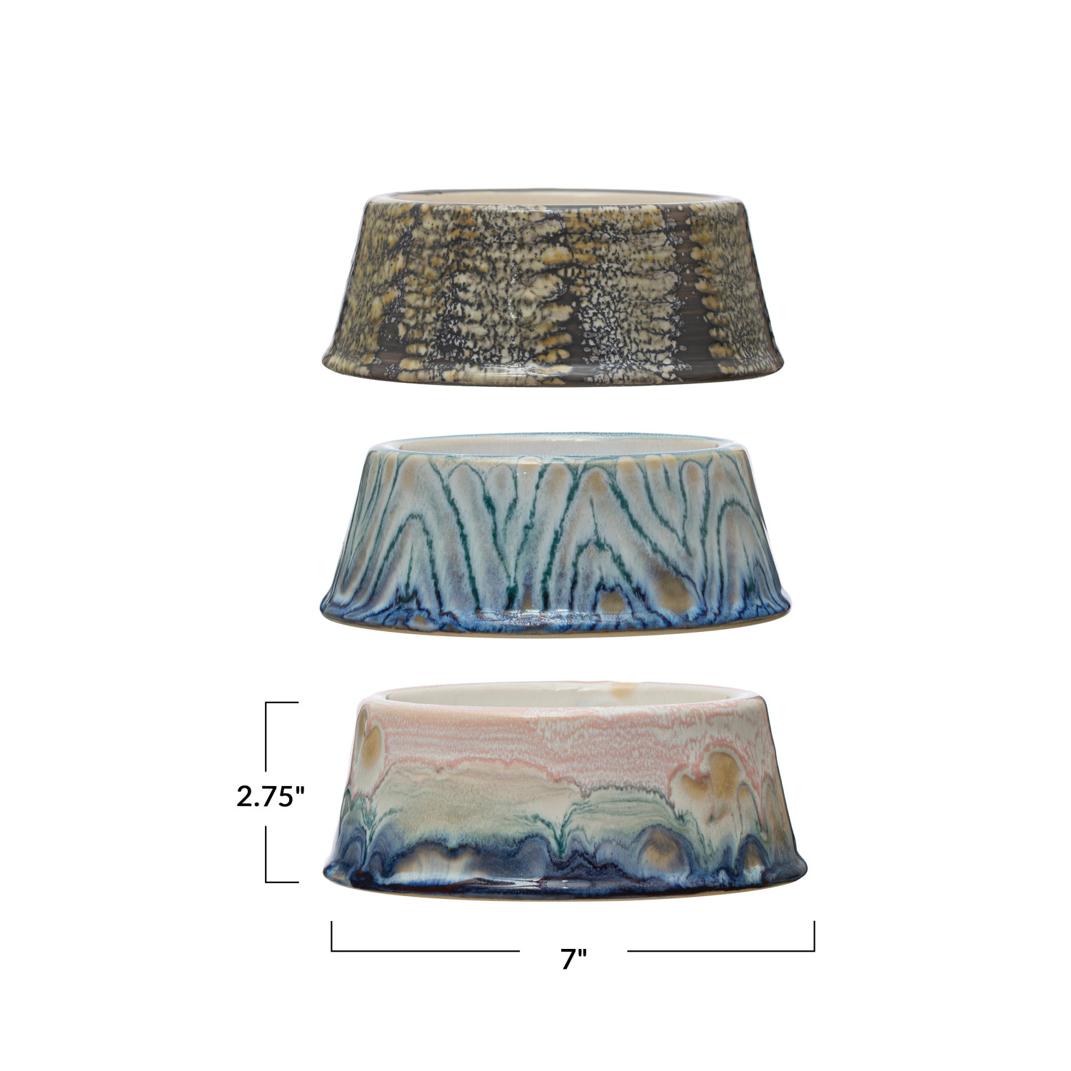 13 oz. Stoneware Pet Bowl, Reactive Glaze, Multi Color, 3 Styles (Each One Will Vary)