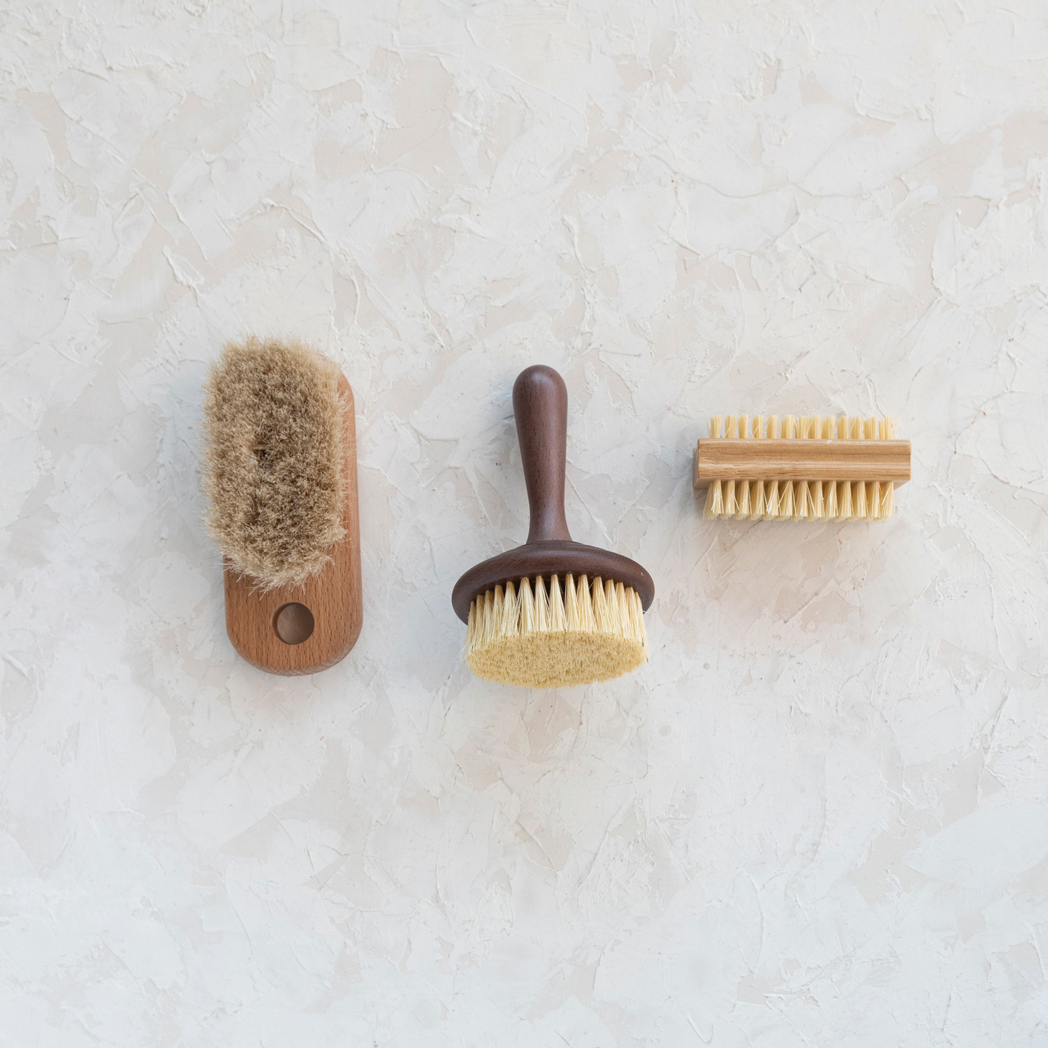 Our thoughtfully curated collection of kitchen tools showcases an expansive selection of natural materials and artisanal silhouettes that are all thoughtfully designed for the modern host or home chef. Elevate weekday dinners or special occasions with an offering of stylishly versatile pieces including rolling pins, salt and pepper shakers, pepper mills, juicers, dish brushes, mortar and pestles, and so much more. Choose from a wide array of materials from marble and wood to stoneware and bamboo, and styles from modern farmhouse and boho to mid-century modern and minimalist. Curate a dazzlingly elegant display for a dinner party, or simply add a touch of style to daily rituals with a piece that is sure to impress. This minimalist dish brush features a sleek wood handle with natural bristles on each side. This piece is food safe. Not dishwasher safe. Made from bamboo and plastic.