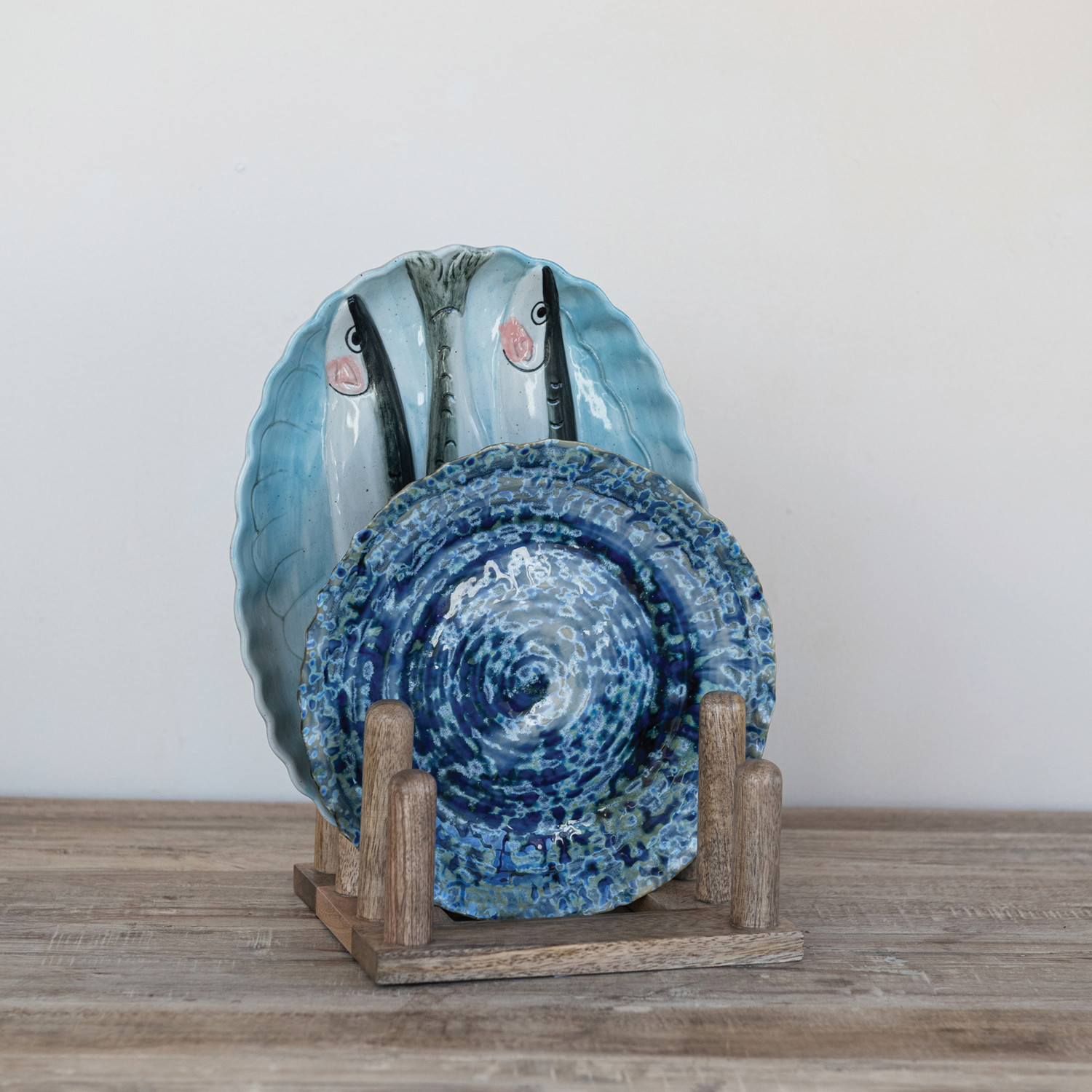 Mango Wood Plate Stand with 3 Sections, Natural