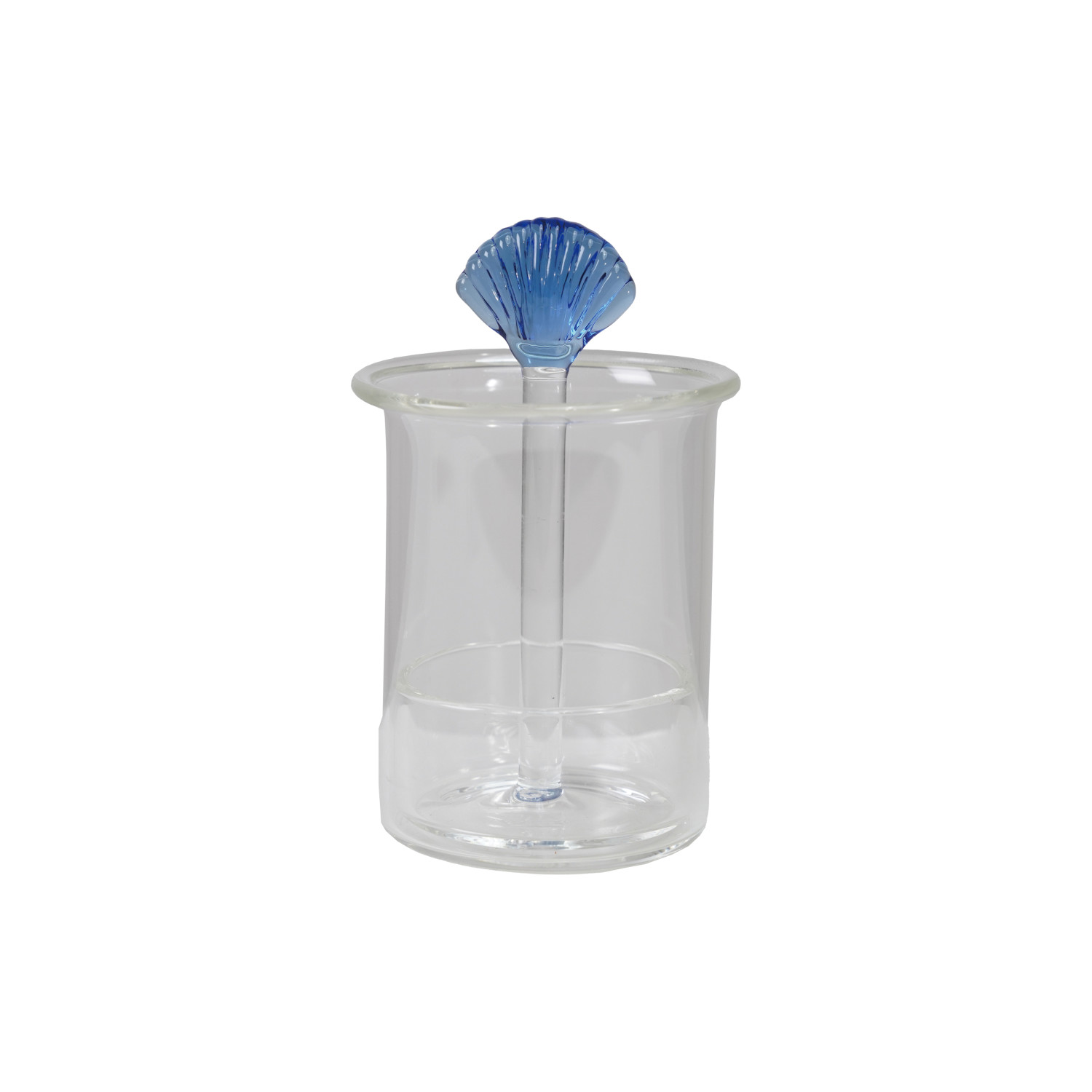 Glass Toothpick/Cotton Swab Holder with Hand-Blown Shell, Blue