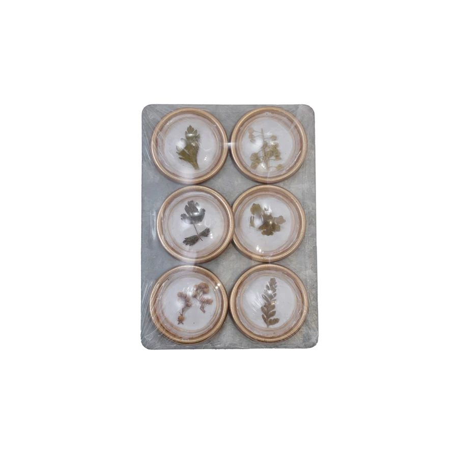Resin Convex Magnets on Metal Card with Botanicals, Set of 6