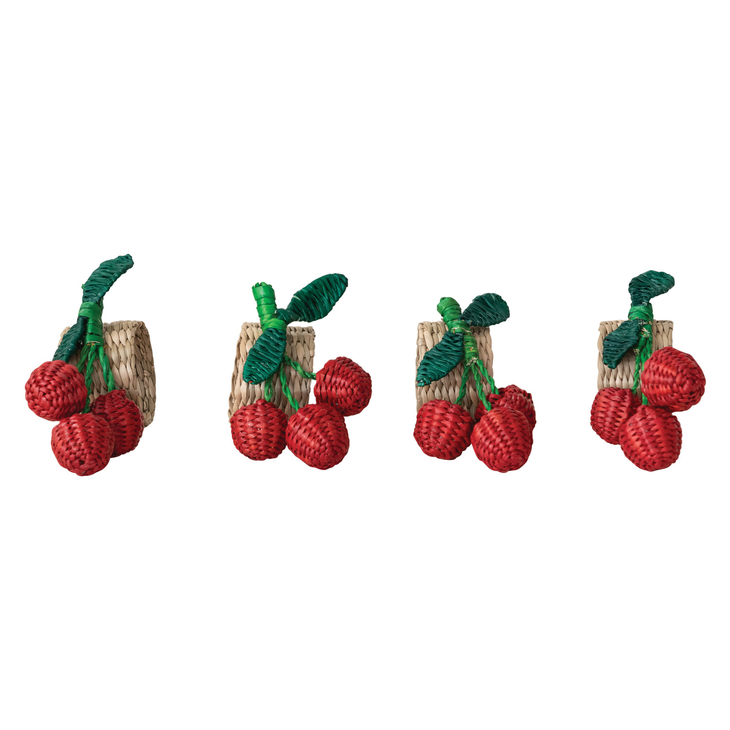 Woven Seagrass Cherry Napkin Rings, Red, Green & Natural, Set of 4 Tied w/ Seagrass